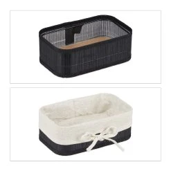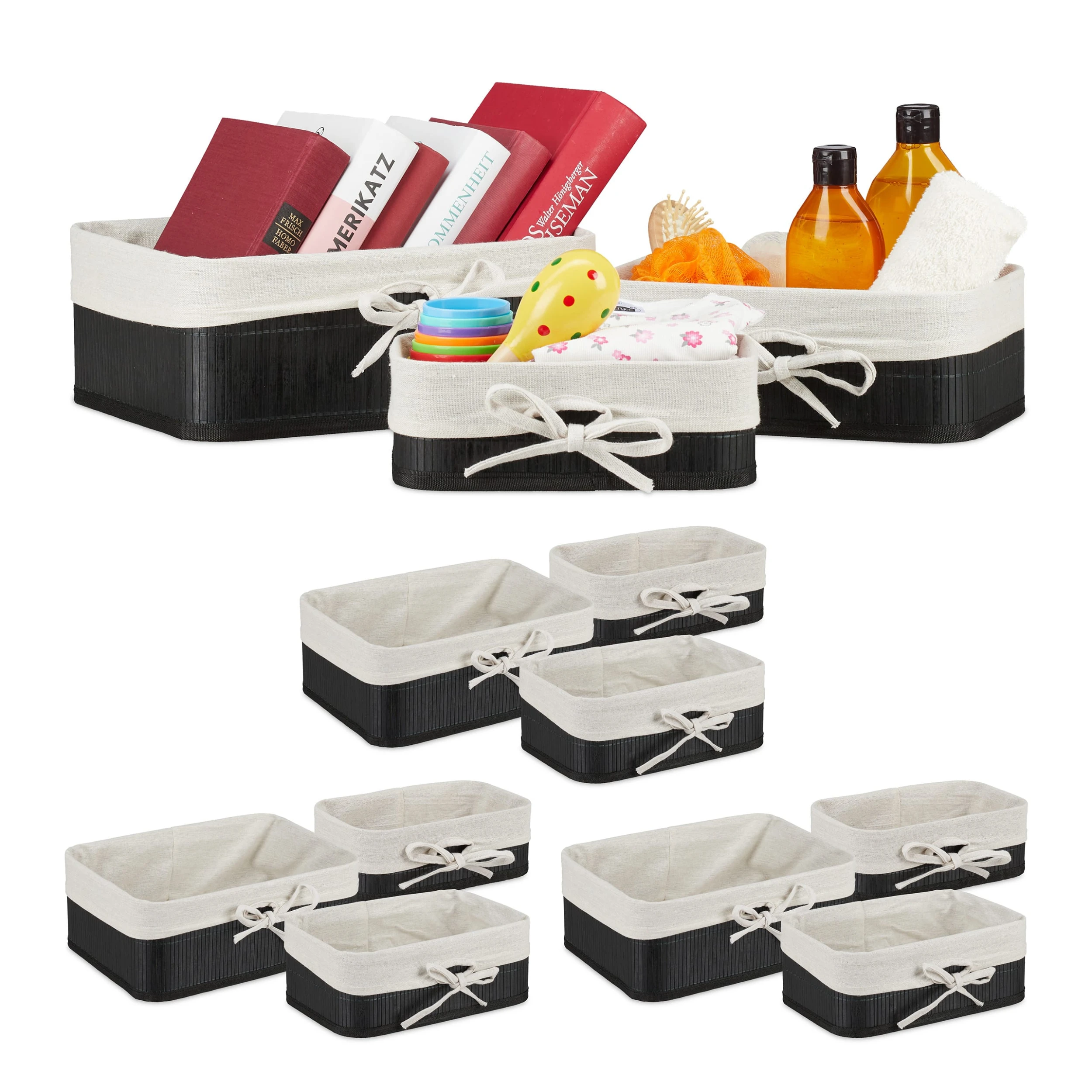 Diese Aufbewahrungskörbe im praktischen 12 tlg. Set bringen mehr Ordnung in Dein Zuhause. Durch die drei verschiedenen Größen lassen sich alle Kleinigkeiten des Alltags verstauen – ob Badartikel, Kinderspielzeug oder Näh- und Bastelutensilien. Dabei machen die dekorativen Regalkörbe nicht nur optisch was her, sondern überzeugen durch die Verarbeitung aus robustem Bambus und einer stabilen Bodenplatte. Das Korb Set bietet idealen Platz für kleine Dinge und passt in jeden Raum und jedes Regal.