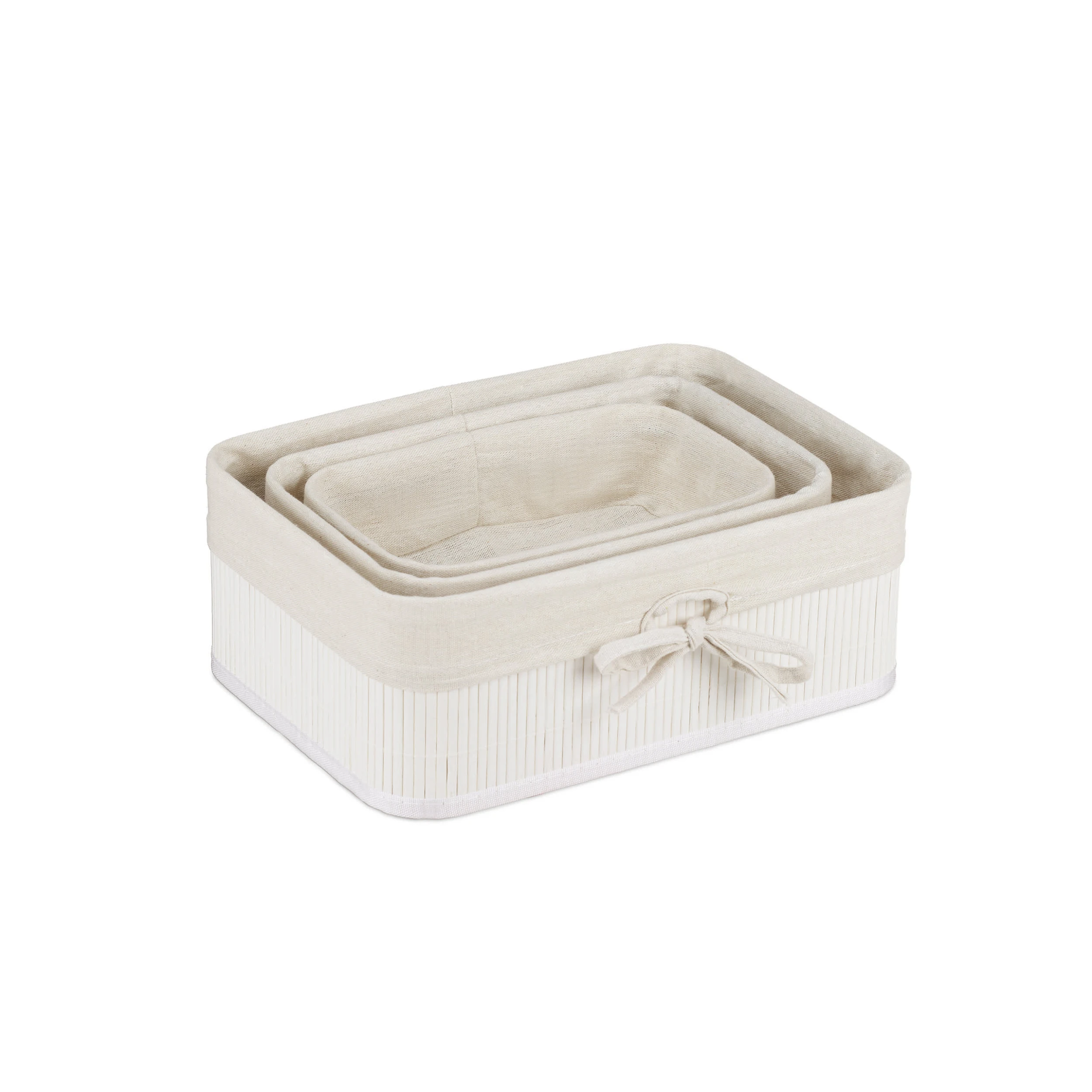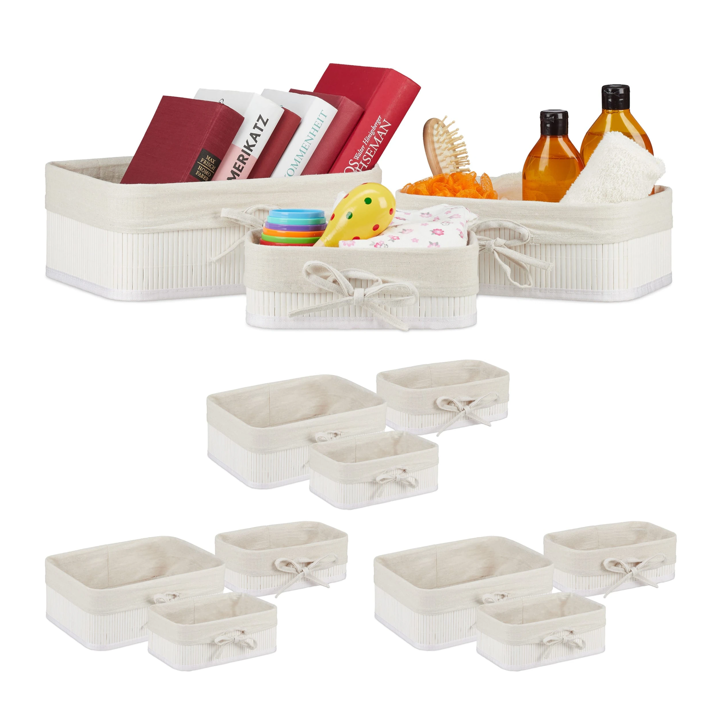 Diese Aufbewahrungskörbe im praktischen 6-tlg. Set bringen mehr Ordnung in Dein Zuhause. Durch die drei verschiedenen Größen lassen sich alle Kleinigkeiten des Alltags verstauen – ob Badartikel, Kinderspielzeug oder Näh- und Bastelutensilien. Dabei machen die dekorativen Regalkörbe nicht nur optisch was her, sondern überzeugen durch die Verarbeitung aus robustem Bambus und einer stabilen Bodenplatte. Das Korb Set bietet idealen Platz für kleine Dinge und passt in jeden Raum und jedes Regal.