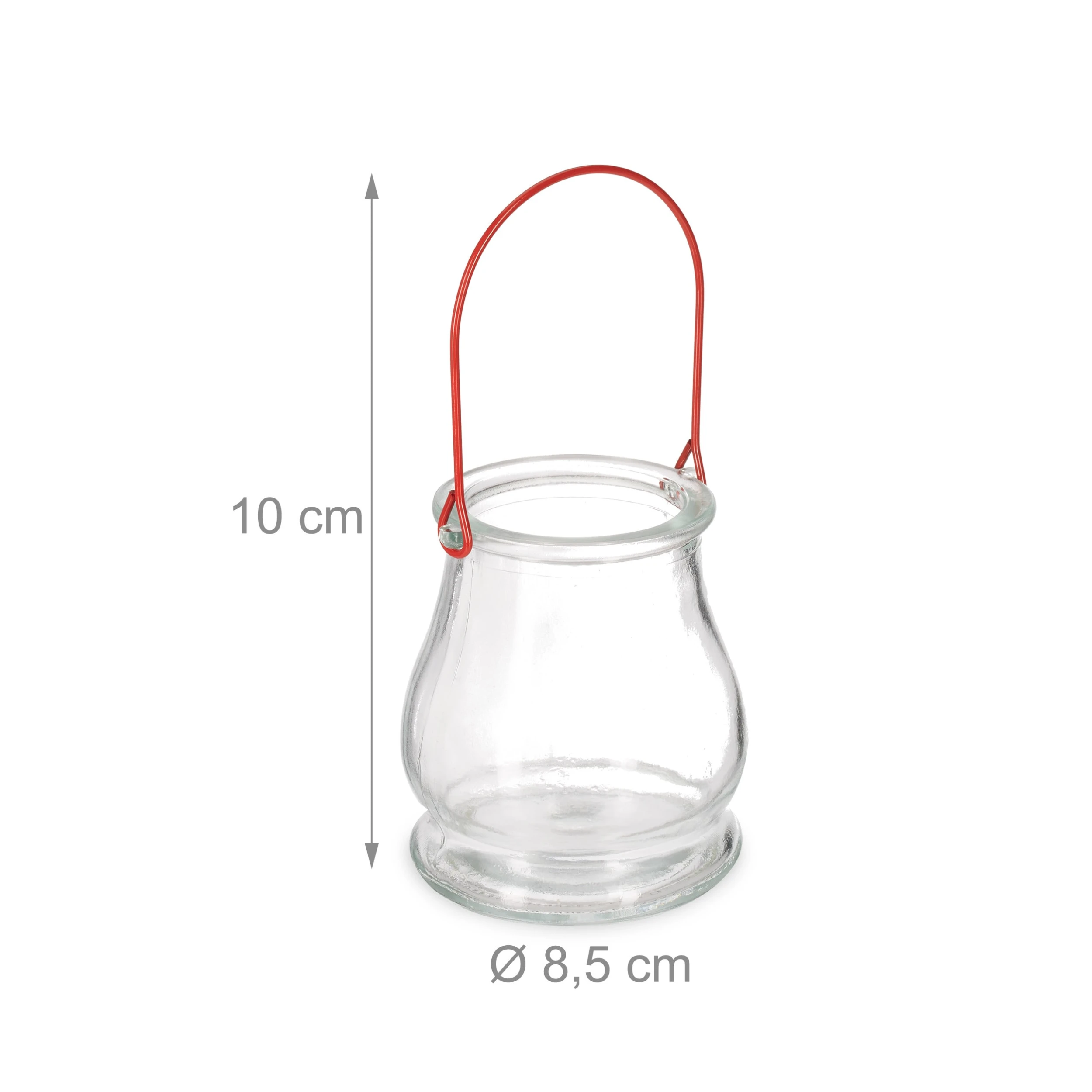 Mit diesen dekorativen Windlichtern zauberst Du im Handumdrehen eine gemütliche Atmosphäre bei Deiner Gartenparty oder einem relaxten Sommerabend auf dem Balkon. Platziere die Teelichtgläser im praktischen 12er Set einfach auf dem Tisch oder hänge sie dekorativ an den Henkeln auf. Auch als Tischdekoration bei Geburtstagen oder Hochzeiten machen die Teelichthalter eine gute Figur. Durch die bauchige Form und den Materialmix aus Glas und Metall sind die Kerzengläser außen und innen ein Blickfang.