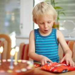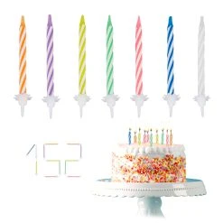 – Farbig sortierte, gestreifte Kerzen – passend für Kindergeburtstage