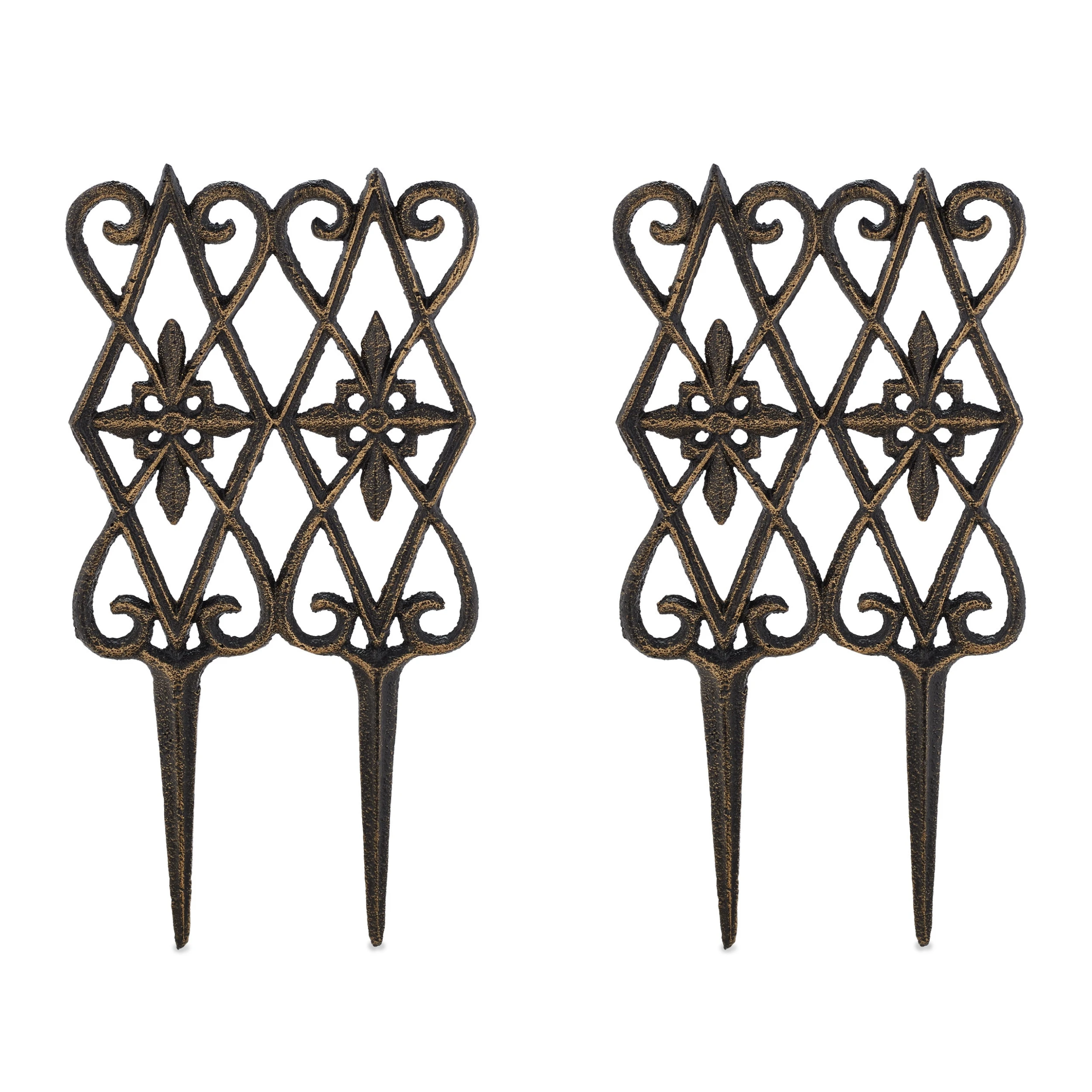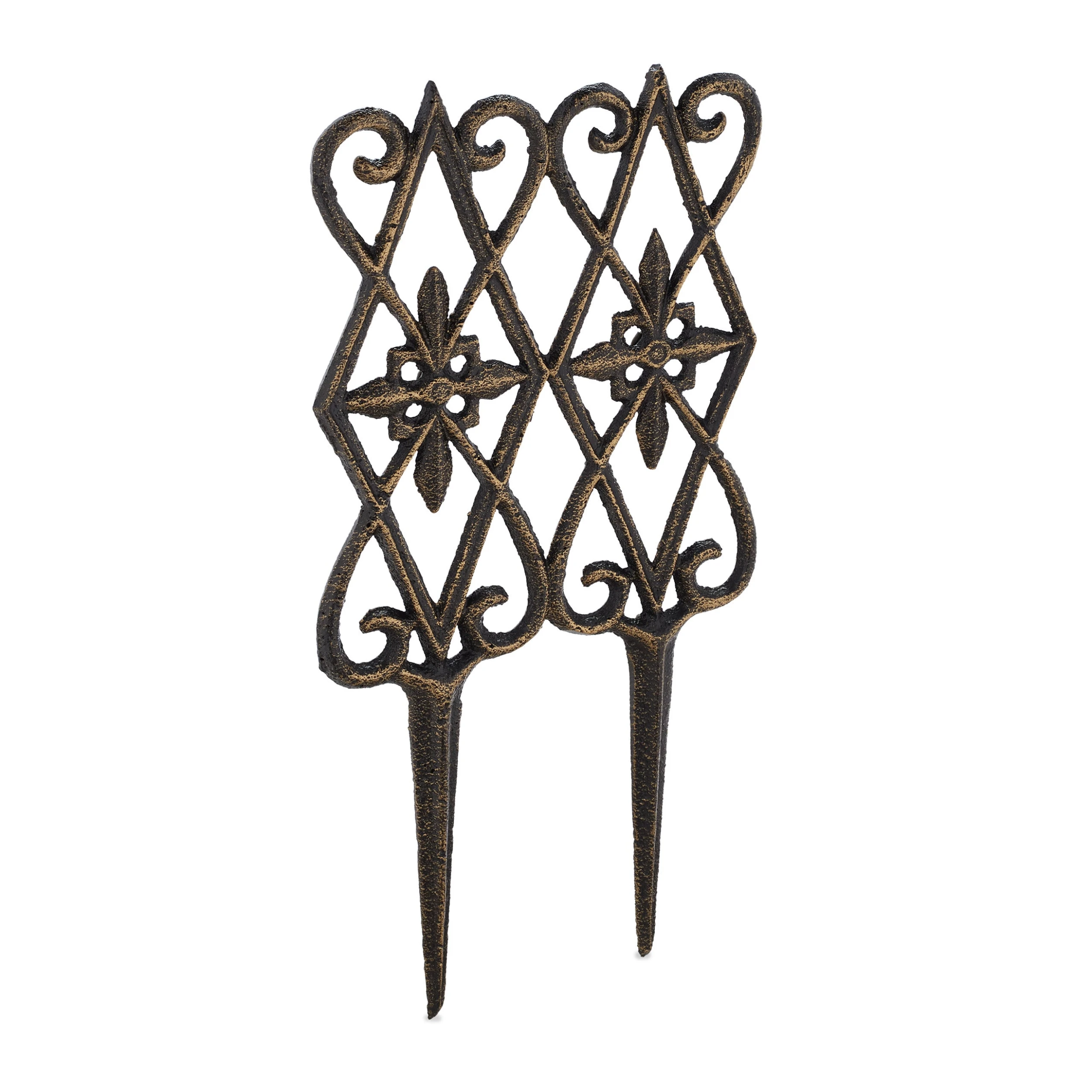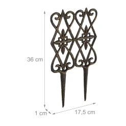 Mit dem dekorativen Beetzaun gestaltest und verschönerst Du Deinen Garten schnell und einfach. Das 2-teilige Rasenkanten Set ermöglicht eine saubere Umrandung von Beeten, Rasen und Wegen. Der Zierzaun verfügt über Erdspieße, welche einfach in den Boden gedrückt werden. Es gibt keine Verbindungen, sodass die Beetumrandung individuell gesteckt werden kann. Der Mini-Gartenzaun ist mit einem kunstvollen Muster aus abstrakten Blumen und Ranken verziert.