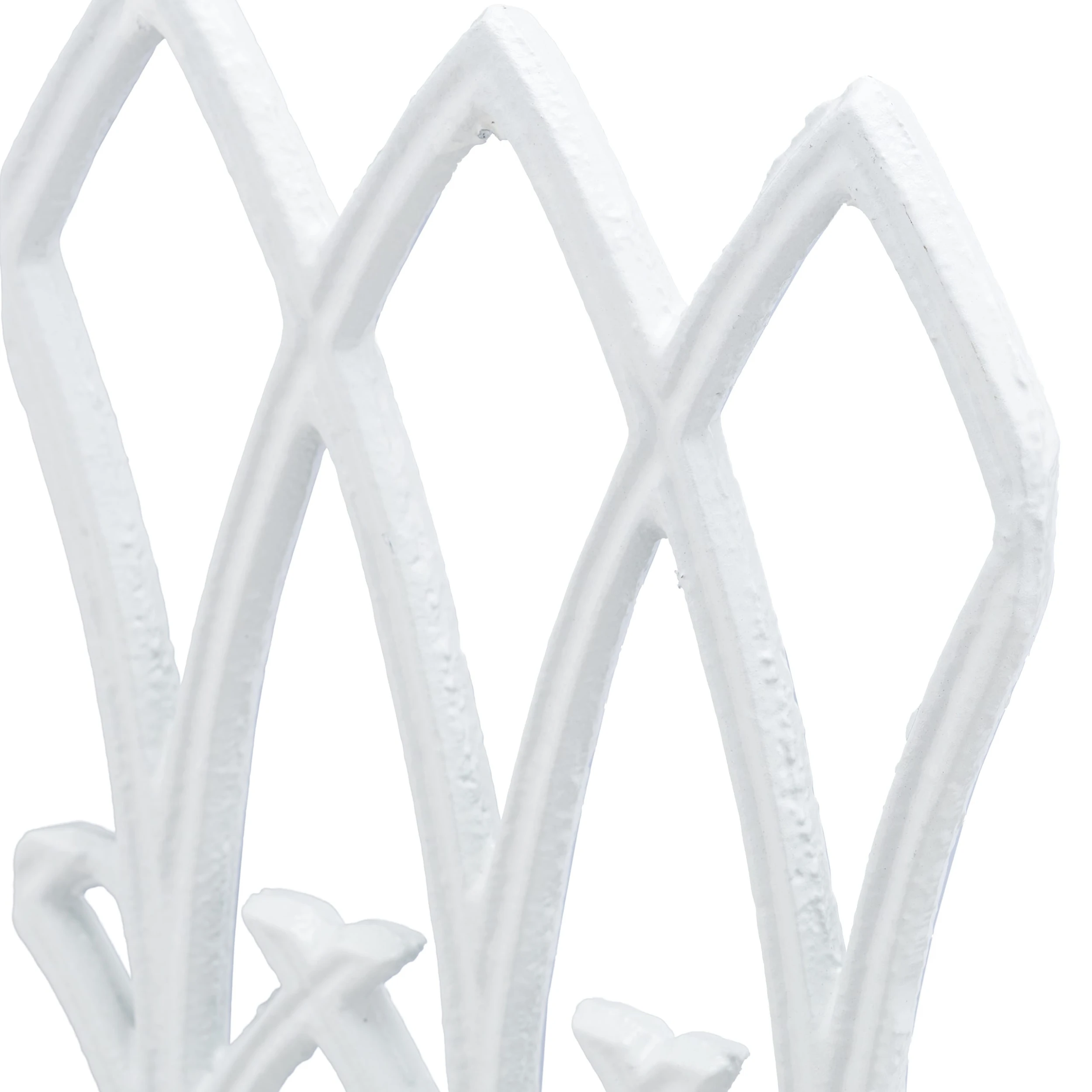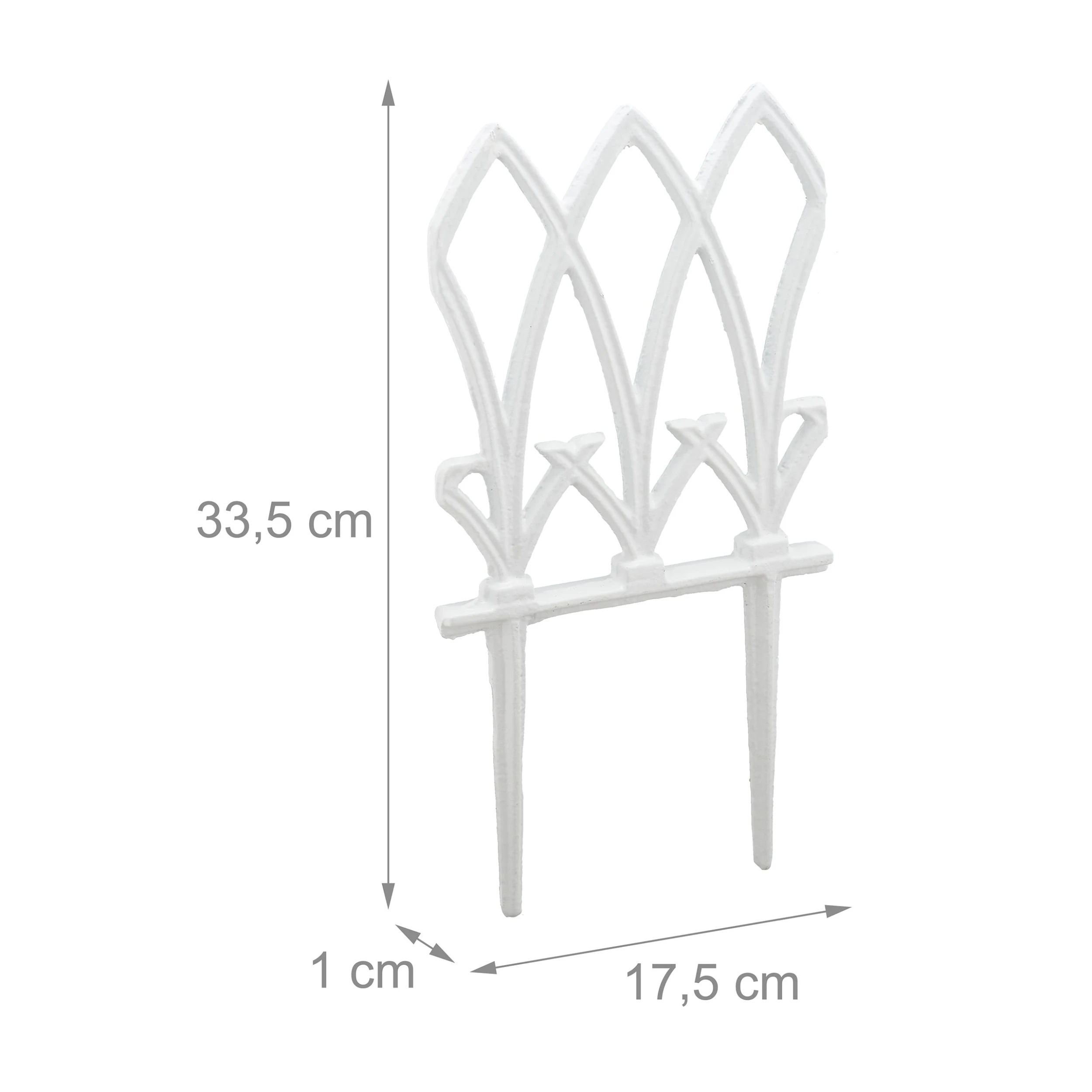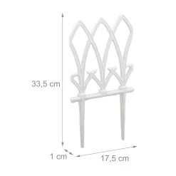 Mit dem dekorativen Beetzaun gestaltest und verschönerst Du Deinen Garten schnell und einfach. Das 2-teilige Rasenkanten Set ermöglicht eine saubere Umrandung von Beeten, Rasen und Wegen. Der Zierzaun verfügt über Erdspieße, welche einfach in den Boden gedrückt werden. Es gibt keine Verbindungen, sodass die Beetumrandung individuell gesteckt werden kann. Der Mini-Gartenzaun ist mit einem kunstvollen Muster im rustikalen Vintage-Look verziert.