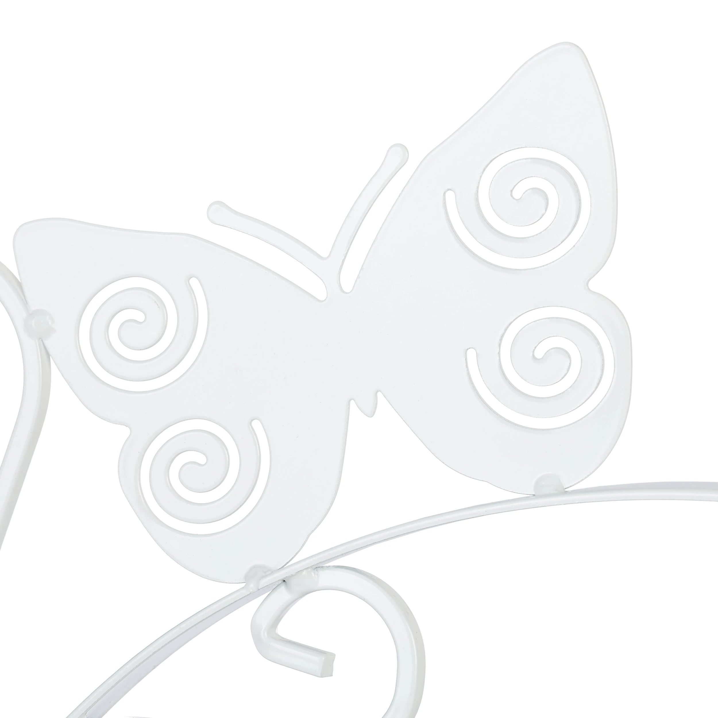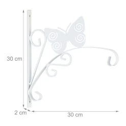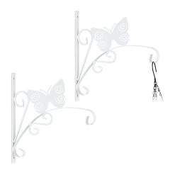 Mit dieser schicken Blumenampel Halterung im 2er Set kannst Du Deine Pflanzen und Blumentöpfe dekorativ in Szene setzen. Die Ampelhalter mit geschwungenen Ornamenten und Schmetterling eignen sich hervorragend für Deinen Balkon oder Garten, können aber auch in der Wohnung genutzt werden. Laternen, Windspiele oder Blumenkränze kannst Du ebenso an den Wandhaken präsentieren. Die Pflanzenaufhängungen aus Eisen können mithilfe des beiliegenden Montagematerials schnell an der Wand befestigt werden.