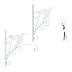 Mit dieser schicken Blumenampel Halterung im 2er Set kannst Du Deine Pflanzen und Blumentöpfe dekorativ in Szene setzen. Die Ampelhalter mit geschwungenen Ornamenten und Vogelfigur eignen sich hervorragend für Deinen Balkon oder Garten, können aber auch in der Wohnung genutzt werden. Laternen, Windspiele oder Blumenkränze kannst Du ebenso an den Wandhaken präsentieren. Die Pflanzenaufhängungen aus Eisen können mithilfe des beiliegenden Montagematerials schnell an der Wand befestigt werden.