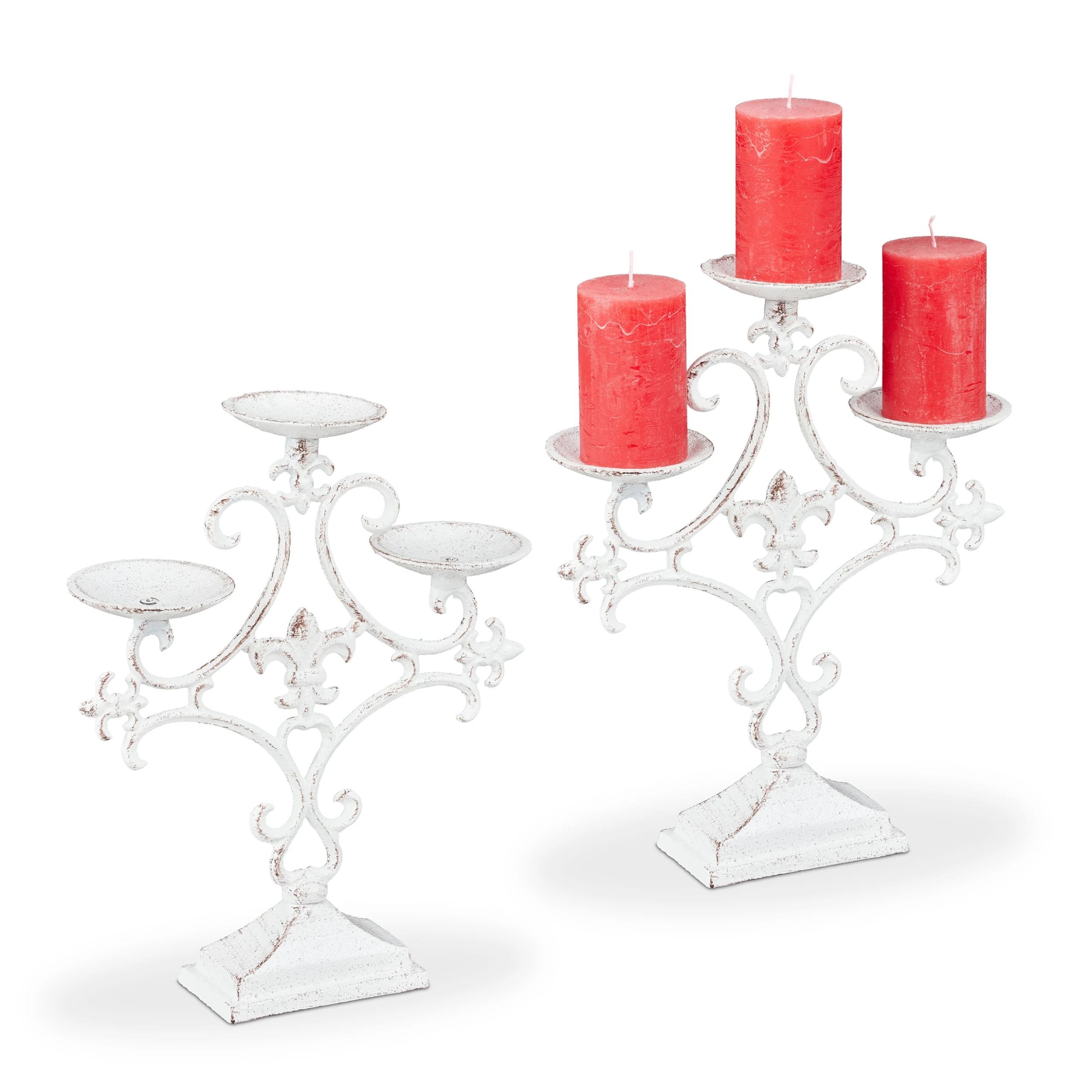 Mit dem dekorativen Kerzenständer zaubern Sie im Handumdrehen eine gemütliche Atmosphäre in Ihren 4 Wänden. Der Stumpenkerzenständer besteht aus 3 Schalen, die auf einer verspielten Halterung im barocken Design angebracht sind. Der Kerzenleuchter aus Gusseisen im antiken Stil ist ein garantierter Hingucker auf Tischen, Kommoden oder Sideboards. In dem Metallkerzenhalter finden 3 kleine Stumpenkerzen oder auch Teelichter Platz.