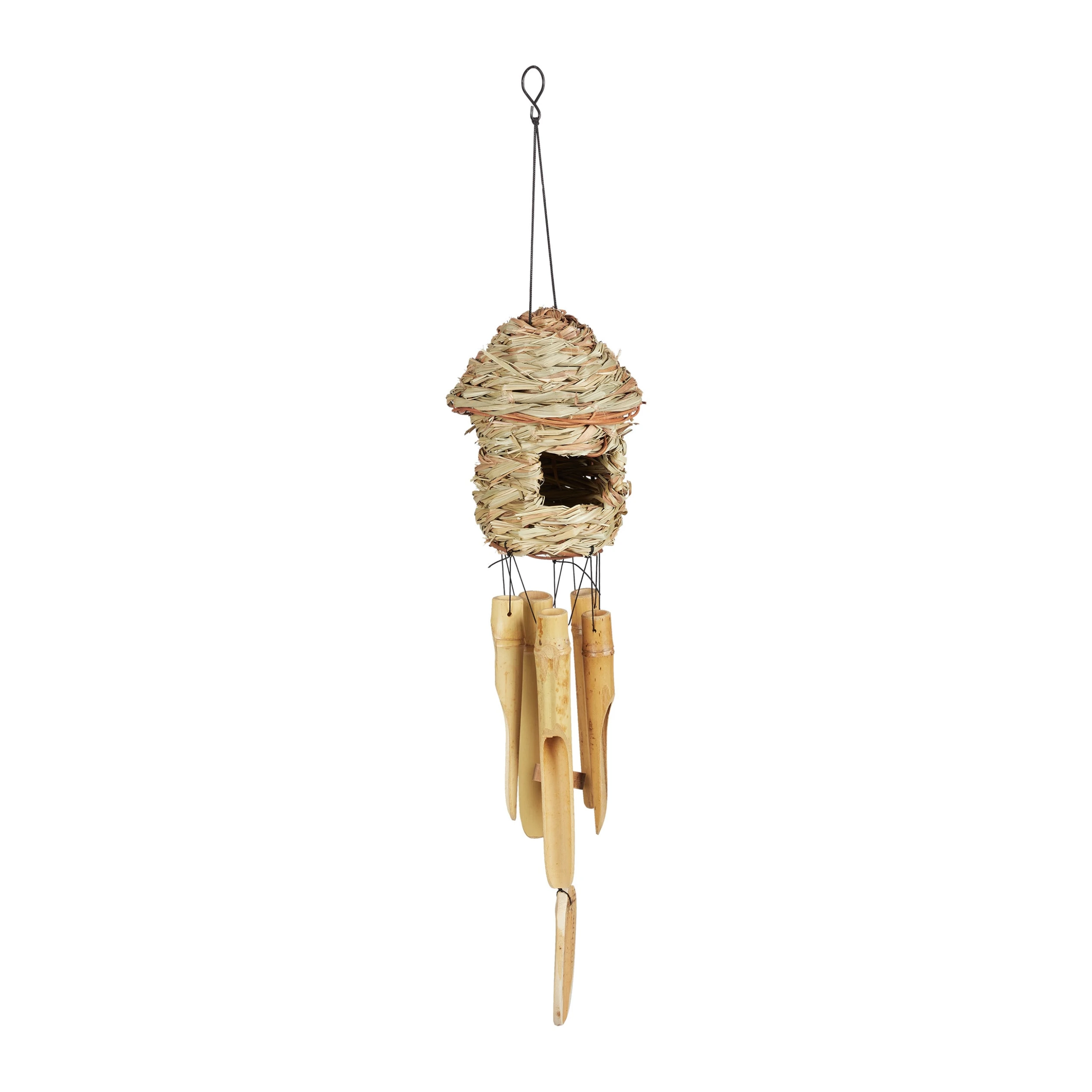 Die Bambus-Glockenspiele sehen nicht nur dekorativ aus, sondern haben einen schönen, beruhigenden Klang. Die natürlichen Hölzer schlagen im Wind sanft zusammen und sorgen für eine angenehme Geräuschkulisse. Ob auf dem Balkon, der Terrasse oder im Garten an einem Baum befestigt – die Windspiele sind vielseitig platzierbar. Die Deko-Windspiele überzeugen mit ihrer natürlichen Optik aus Bambus und einem kleinen Deko-Vogelhaus aus Stroh.