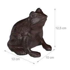 Sorgen sie mit dieser Tierfigur für ein lebendiges Flair in Ihrem Garten. Ob im Blumenbeet, neben dem Gartenteich oder auf dem Balkon – der Dekofrosch ist überall ein Blickfang. Das antike Design macht aus dem Frosch eine Dekofigur mit Retro Charme. Verschenken Sie den Gartenfrosch auch an die Frosch-Liebhaber unter Ihren Freunden und Verwandten. Dank des pulverbeschichteten Materials und der schweren Qualität aus Gusseisen hält der Frosch Wind und Wetter draußen stand.