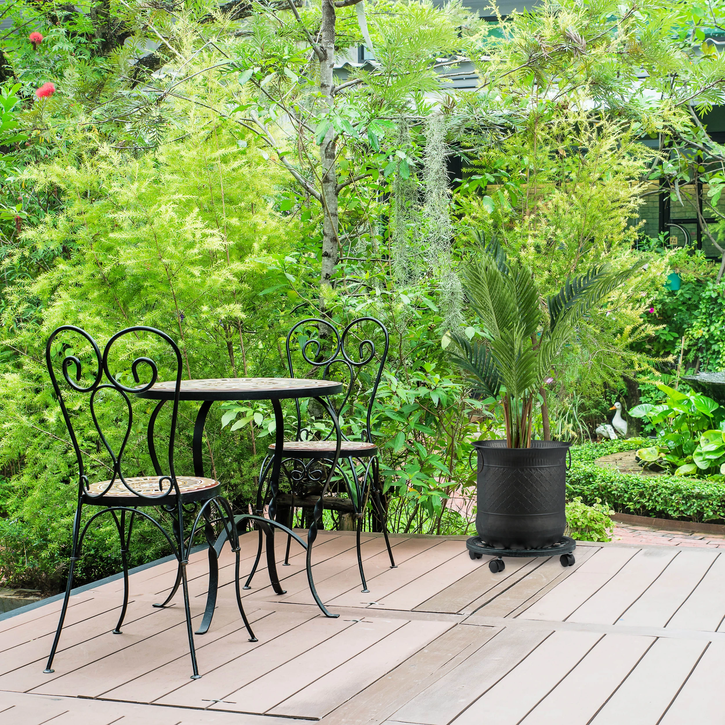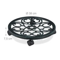 Bewegen Sie Ihre Topfpflanzen bequem mit diesem runden Pflanzen-Rolluntersetzer. Der Blumenroller besteht aus pulverbeschichtetem Aluminium und kann damit problemlos im Außenbereich genutzt werden. Aber auch im Innenbereich ist der Pflanzenuntersetzer ein echter Hingucker und passt mit seinen dekorativen Ornamenten perfekt zum Jugend- oder Landhausstil. Dank seiner 4 Rollen aus Kunststoff steht der Blumentopfroller stabil und lässt sich leicht bewegen.