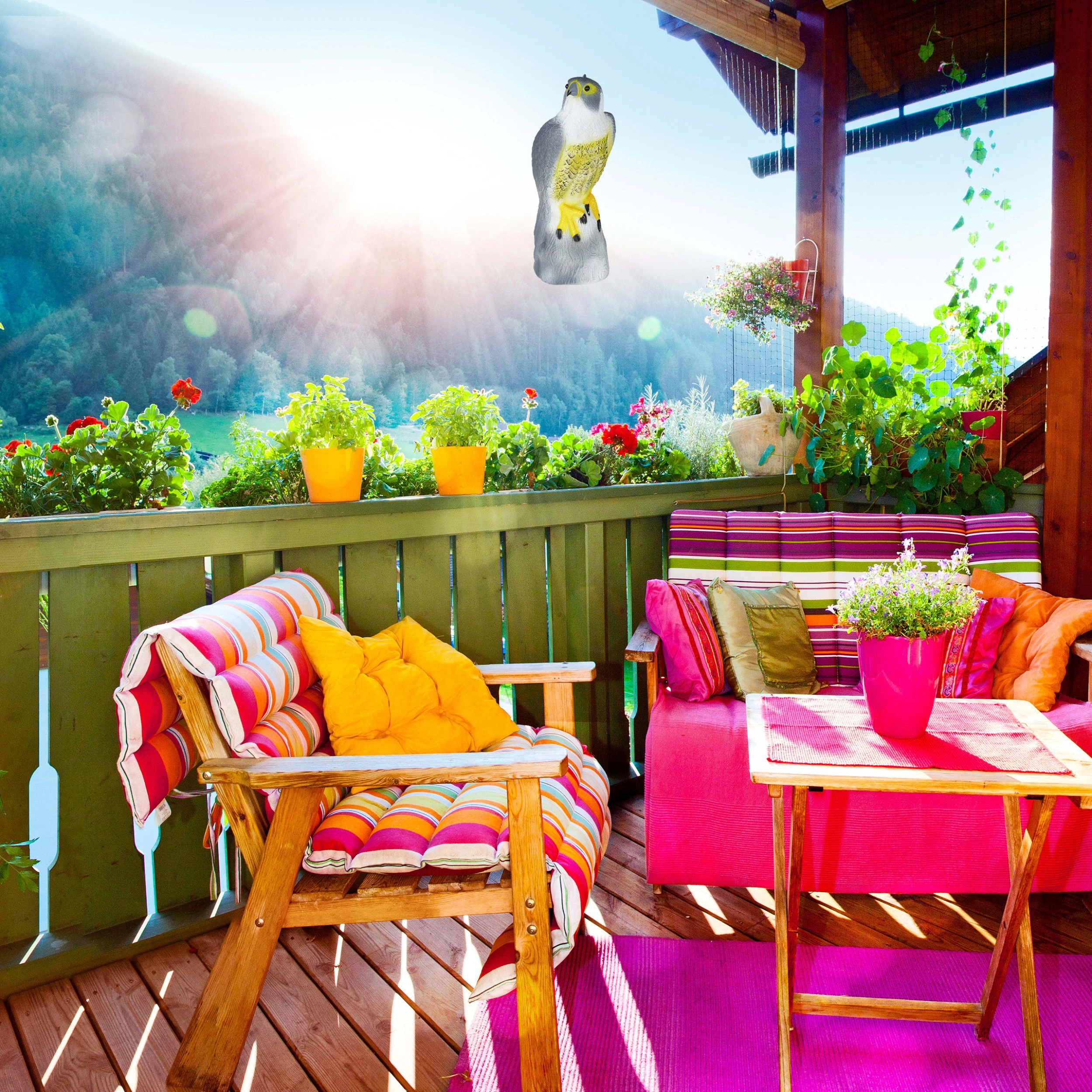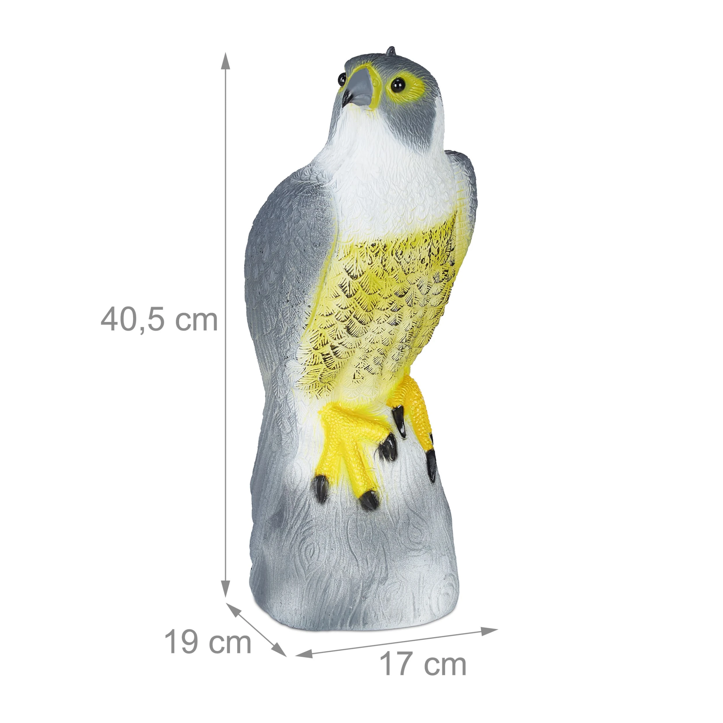 Möchten Sie auch lästige Tauben und kleine Nager loswerden, die sich an Ihrem Gemüsegarten vergehen oder den Balkon mit Unrat verschmutzen? Der Falke erschreckt unerwünschte Tiere durch sein realistisches Äußeres. Auf andere Tiere wirkt es, als säße dort ein echter Vogel. Für einen stabilen Stand befüllen Sie den Taubenschreck über die Öffnung am Boden mit Sand oder Kieselsteinen. Auch als hübsche Dekofigur im Garten, auf dem Balkon oder der Terrasse ist die Vogelattrappe geeignet.