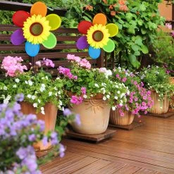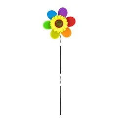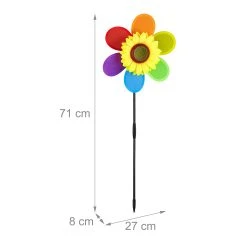 Sie wollen Ihren Blumenkasten oder Ihr Beet etwas lebendiger gestalten? Dann ist dieser sommerliche Blumenstecker die ideale Gartendekoration für Sie. Einfach zusammengesetzt und in einen Blumentopf gesteckt, ist das Windspiel im Blumen-Design ein echter Hingucker. Erfreuen Sie sich an den Farben des Regenbogens, während das Windrad von einer Brise angetrieben wird. Platzieren Sie das Deko Windrad im Garten, auf der Terrasse oder dem Balkon zur Freude von Kindern und Erwachsenen.