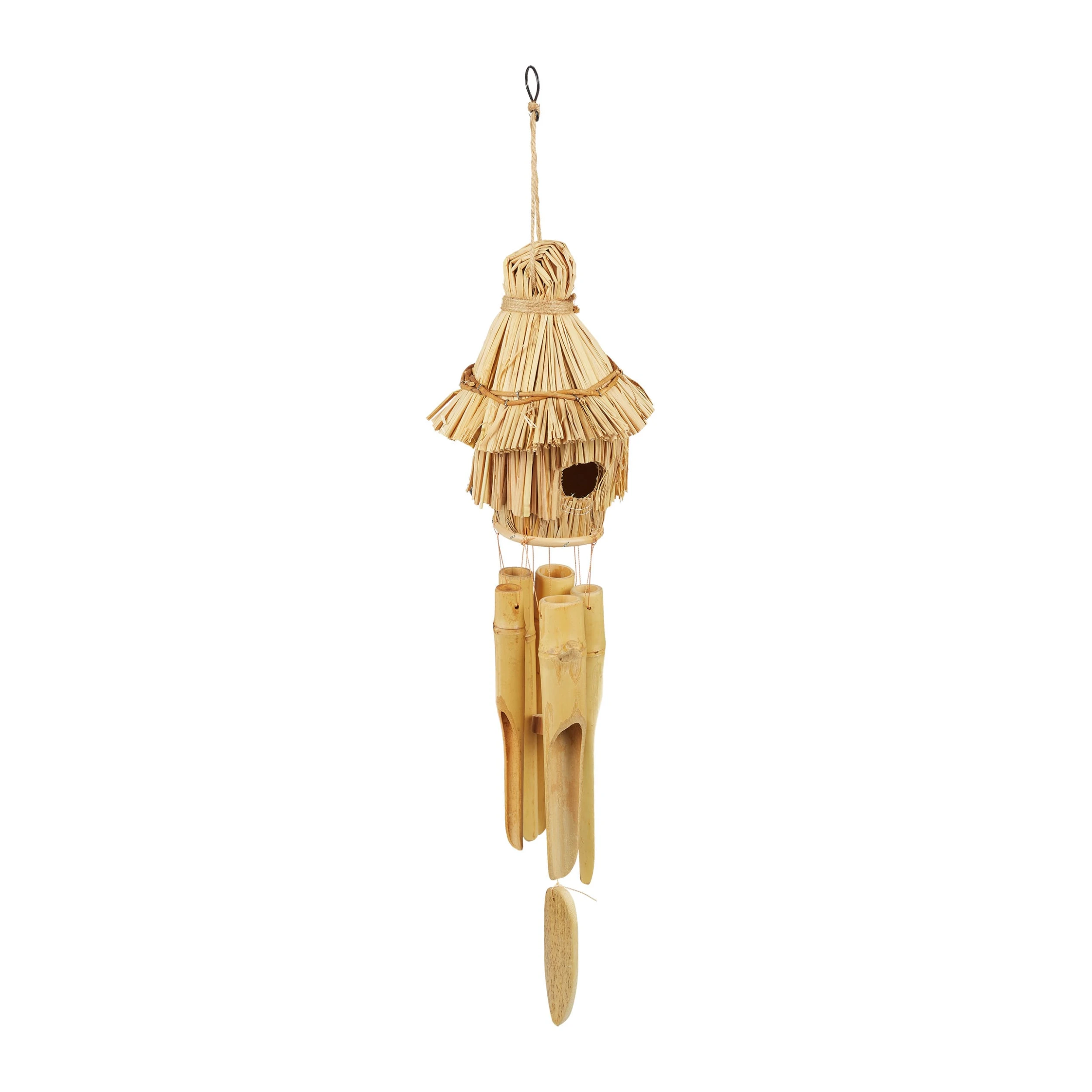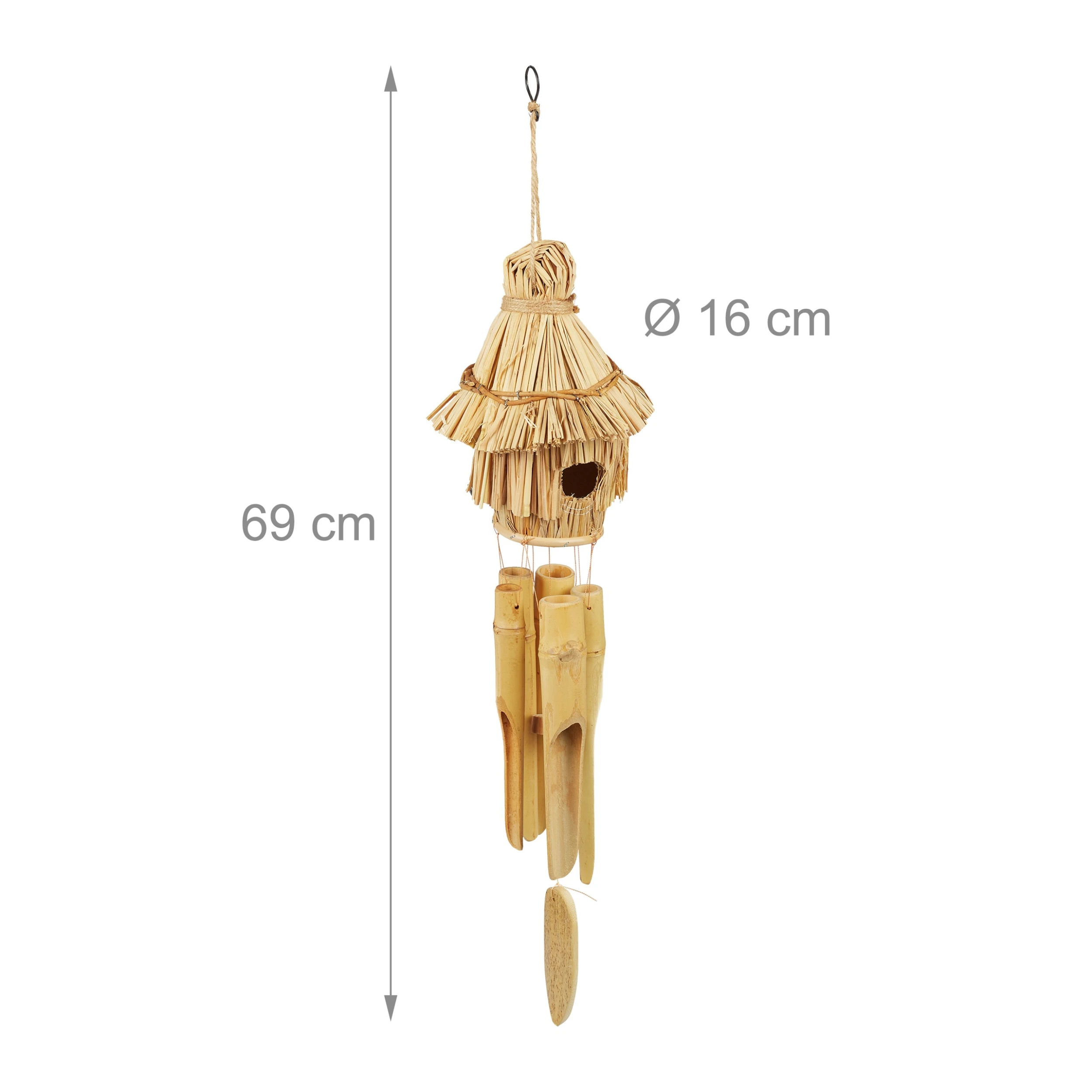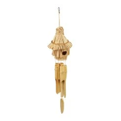 Die Bambus-Glockenspiele sehen nicht nur dekorativ aus, sondern haben einen schönen, beruhigenden Klang. Die natürlichen Hölzer schlagen im Wind sanft zusammen und sorgen für eine angenehme Geräuschkulisse. Ob auf dem Balkon, der Terrasse oder im Garten an einem Baum befestigt – die Windspiele sind vielseitig platzierbar. Die Deko-Windspiele überzeugen mit ihrer natürlichen Optik aus Bambus und einem kleinen Deko-Vogelhaus aus Stroh.