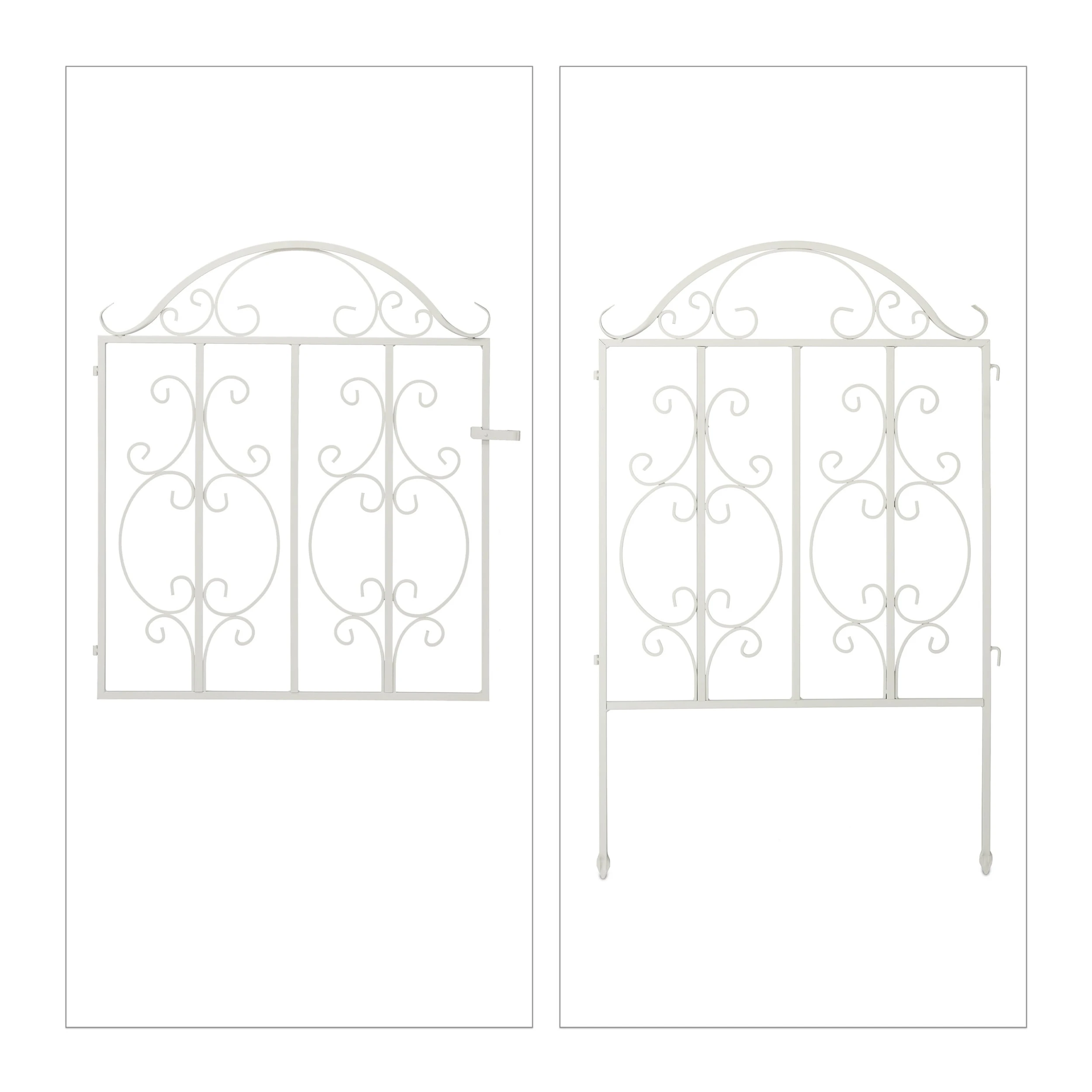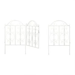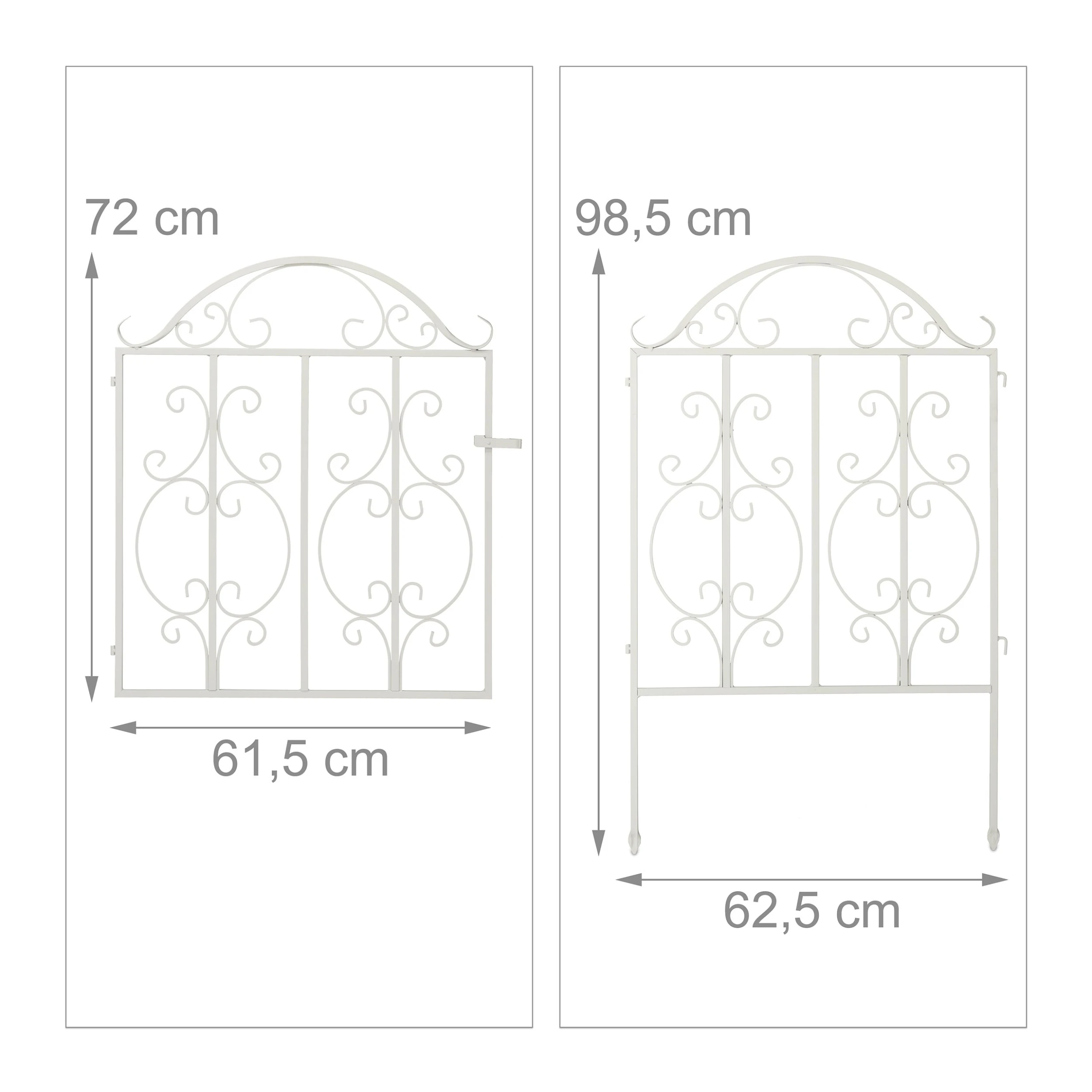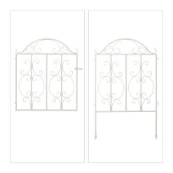 Verleihen Sie Ihrem Garten den letzten Schliff mit diesem dekorativen Gartentor aus Stahl. Die verzierte Gartenpforte besteht aus drei Teilen: Zwei Zaunelementen und einer Flügeltür. Die Segmente sind über ein steckbares Scharnier miteinander verbunden und können so mit anderen Zaunelementen erweitert werden. Die Gartentür besticht mit ihren geschwungenen Ornamenten und verziert Ihren Garten auf elegante Art. Zur Installation stecken Sie die Gartentor-Elemente einfach direkt in den Boden.