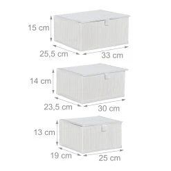 Wenn Badablage oder Wannenrand überfüllt sind, schafft der Aufbewahrungskorb fürs Badezimmer Ordnung. Der feuchtigkeitsabsorbierende Bambuskorb ist nicht nur für das Bad geeignet. Im ganzen Haus halten die Aufbewahrungsboxen die Dinge des Alltags übersichtlich an ihrem Platz. Die praktischen Dekokörbe zieren Kinder-, Schlaf- oder Wohnzimmer. Verwenden Sie das Set als Regalkorb oder Schrankbox für Socken, Accessoires und andere Kleinteile.