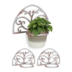 Mit dieser gusseisernen Blumentopfhalterungen im antiken Shabby Look bringen Sie Ihre Pflanzen am Haus besonders schön zur Geltung. Die floralen, geschwungenen Formen des Wandhalters spielen gekonnt mit seinem rustikalen Charme zusammen und lassen den Pflanzenhalter zu einem Blickfang an jeder Hauswand werden. Über die vorgebohrten Löcher lässt sich die Blumenhalterung spielend leicht aufhängen und bildet ein harmonisches Zusammenspiel mit schick bepflanzten Blumentöpfen.