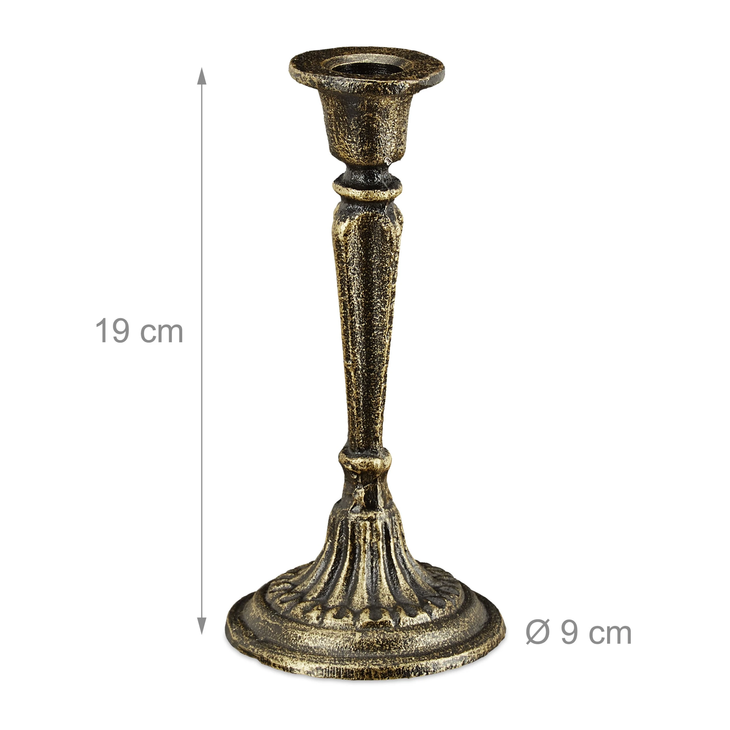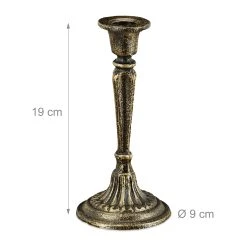Mit dem dekorativen Vintage Kerzenhalter zaubern Sie im Handumdrehen eine gemütliche Atmosphäre in Ihren 4 Wänden. Auf Kommoden, Sideboards oder Beistelltischen macht der Kerzenständer eine gute Figur. Oder wie wäre es mit einem romantischen Candle-Light-Dinner der rustikalen Sorte? Der Kerzenleuchter aus Gusseisen im angesagten Shabby-Chic-Stil ist auf jeden Fall ein Hingucker in Ihrem Zuhause. Der Metallkerzenhalter ist für längere Stab- oder Tafelkerzen geeignet.