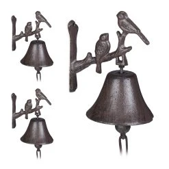 Die Türglocke aus Gusseisen mit den hübschen Vögeln verschönert Eingangsbereiche, Terrasse und Garten. Neben Tür und Tor an der Wand befestigt, wirkt die Glocke nicht nur einladend, sie kann mit ihrem hellen und lauten Klang auch dazu dienen, Freunde und Familie zusammenzutrommeln. In antiker Optik versprüht die Eisenglocke Vintage Charme und dekoriert im nostalgischen Landhausstil Ihren Außenbereich. Dank der drei vorgebohrten Löcher kann die wetterfeste Metallglocke leicht angebracht werden.