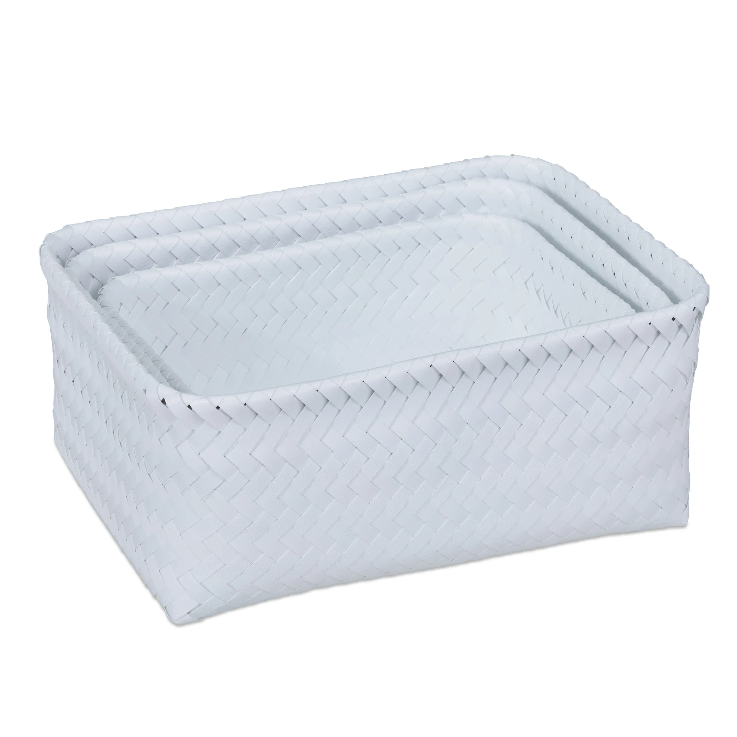 Mit dem 3er Aufbewahrungskorb Set sind Sie perfekt ausgerüstet, um verschiedene Dinge des Alltags übersichtlich und ordentlich aufzubewahren. Verstauen Sie in den geflochtenen Dekokörben in 3 Größen Kosmetik im Bad, Socken und Unterwäsche im Kleiderschrank oder verwenden Sie die Utensilienkörbe als dekorative Aufbewahrungslösung in Wohnzimmer und Flur. Auch als Handtuchkorb im Gäste-WC machen die Flechtkörbe eine gute Figur. Bei Nichtgebrauch können sie platzsparend ineinander gestapelt werden.