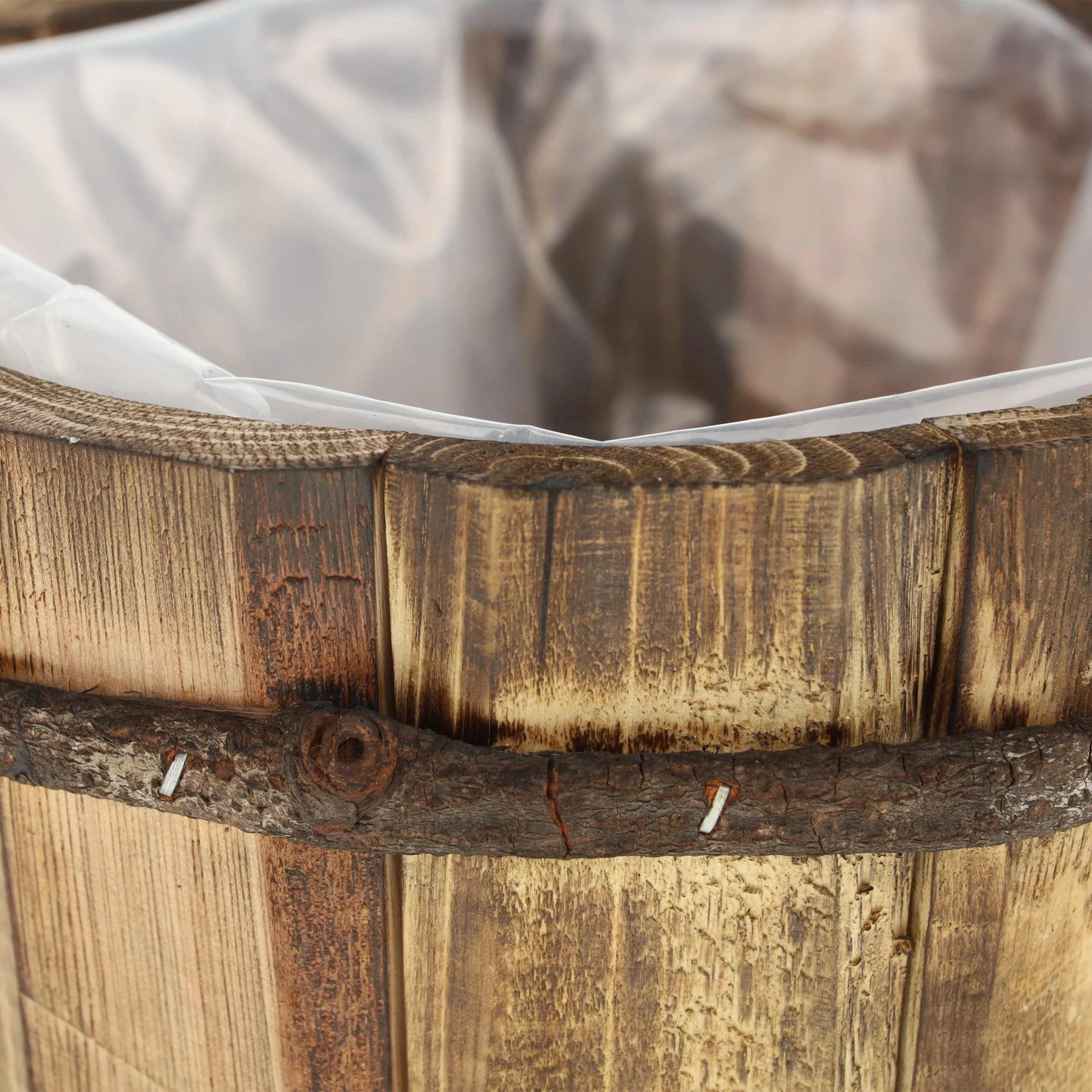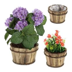 Nutzen Sie diese Pflanzkübel aus Kastanienholz, um in Ihrer Wohnung die richtigen Akzente zu setzen. Die Pflanztöpfe sorgen für ein naturnahes Flair und bestechen dabei durch ihre rustikale Optik. Das Set besteht aus drei verschiedenen Größen. Die urigen Pflanzbehälter sind aus geflammten Kastanienholz gefertigt. Sie eignen sich für Balkon, der Terrasse oder etwa die Fensterbank. Durch die Innenverkleidung mit Folie können Sie außerdem direkt mit dem Bepflanzen beginnen.