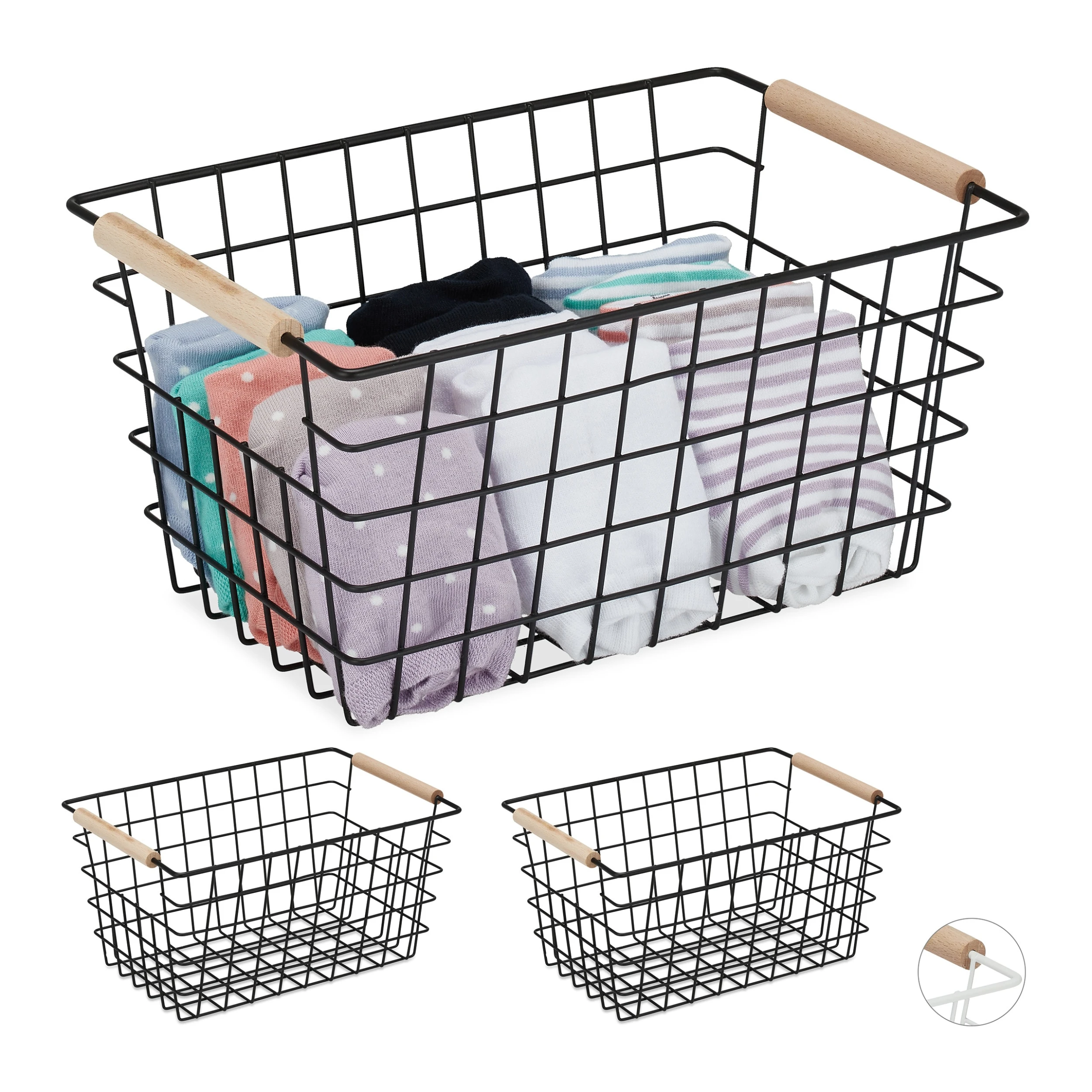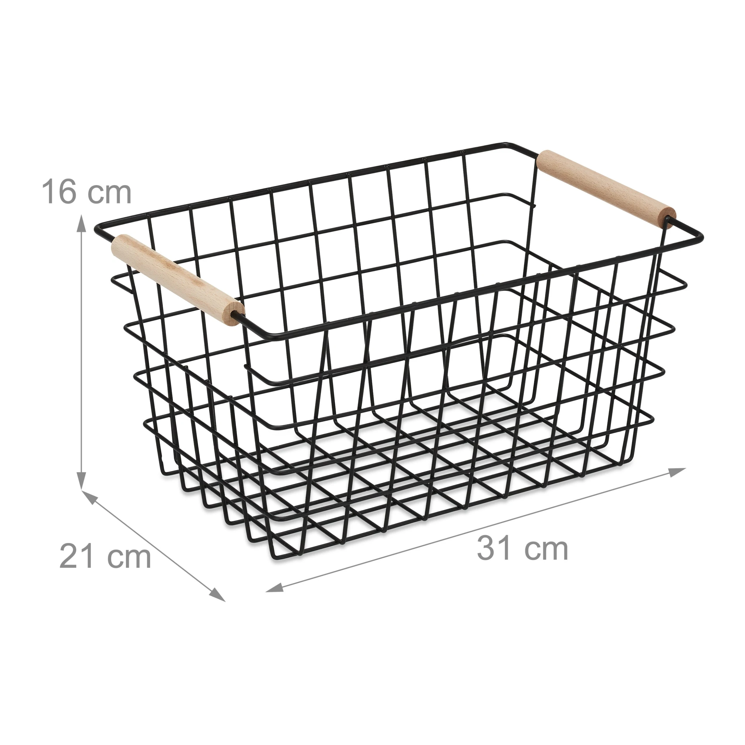 Der Metallkorb ist ein echter Aufbewahrungs-Allrounder und bietet stilvoll Stauraum für kleinere Gegenstände. Das Körbchen ist dank der 2 Holzgriffe einfach tragbar. Verstauen Sie Kosmetikartikel oder Kleidungsstücke wie Socken, Unterwäsche, Tücher und Accessoires platzsparend. Nutzen Sie den Korb im Badezimmer, im Kleiderschrank oder als Regalkorb. Das offene und zeitlos schlichte Gitter-Design verschafft Ihnen nicht nur schnell Überblick über den Inhalt, sondern ist auch ein echter Hingucker.