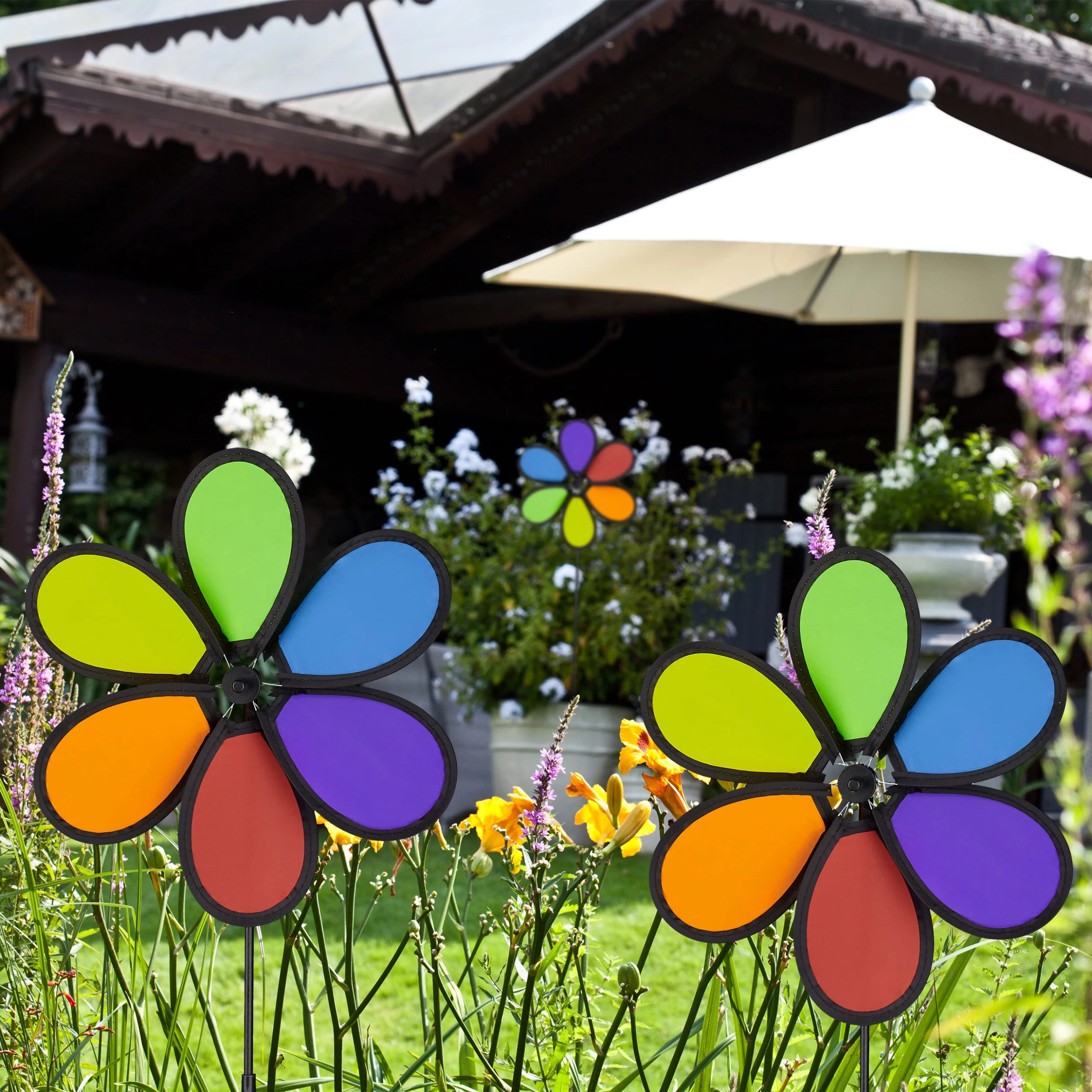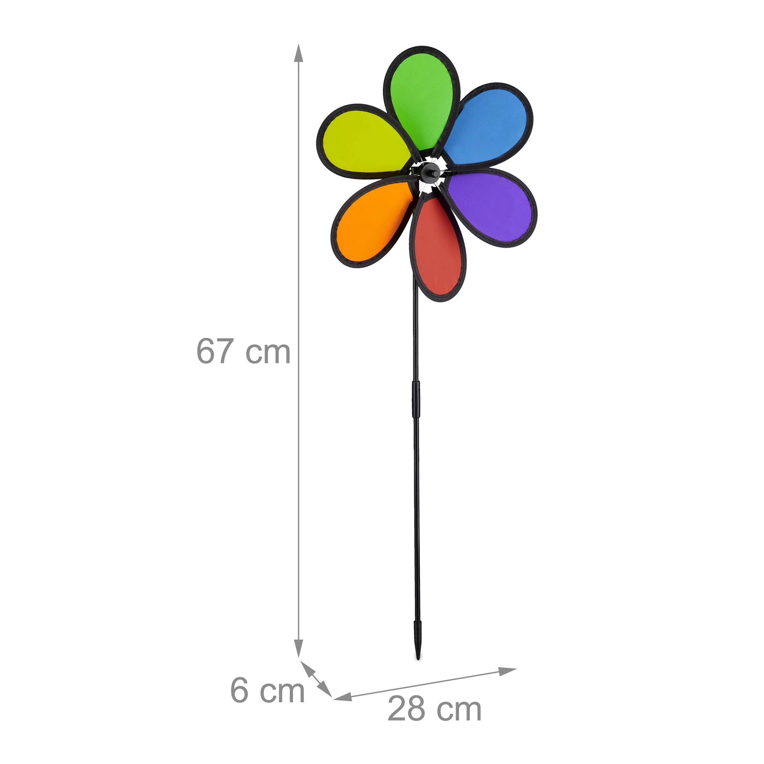 Sie wollen Ihren Blumenkasten oder Ihr Beet etwas lebendiger gestalten? Dann ist dieser sommerliche Blumenstecker die ideale Gartendekoration für Sie. Einfach zusammengesetzt und in einen Blumentopf gesteckt, ist das Windspiel im Blumen-Design ein echter Hingucker. Erfreuen Sie sich an den Farben des Regenbogens, während das Windrad von einer Brise angetrieben wird. Platzieren Sie das Deko Windrad im Garten, auf der Terrasse oder dem Balkon zur Freude von Kindern und Erwachsenen.