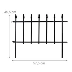Mit dieser dekorativen Beeteinfassung gestaltest und verschönerst Du Deinen Garten schnell und einfach. Markiere die Übergänge zwischen Beeten, Grünflächen, Wegen und Rabatten mit dem niedrigen Zierzaun. Dazu werden die 4 Zaunelemente mit den Erdspießen einfach in den Boden gedrückt. Die Beetbegrenzung lässt sich je nach Bedarf flexibel anordnen. Mit seinem schlichten und zugleich dekorativem Design im Gotik Flair wird der Steckzaun dabei sicher zum Hingucker in Deinem Garten.
