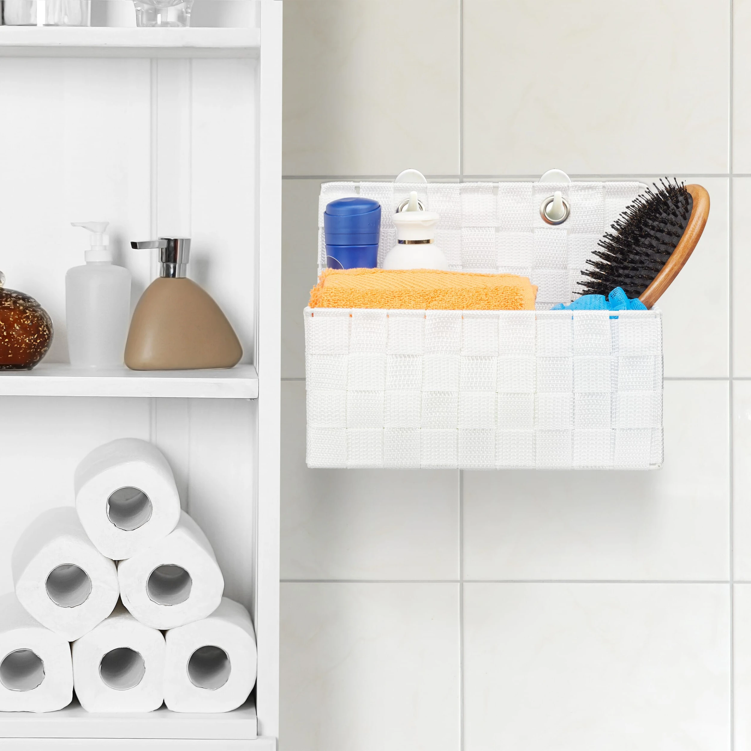 Wenn Badablage oder Garderobe überfüllt sind, schafft der Aufbewahrungskorb zum Hängen Ordnung. Die Organizerbox ist dabei besonders platzsparend durch seine Anbringung an Wand oder Tür mit Haken, Nägeln oder Schnüren. Im ganzen Haus hält das Körbchen die Dinge des Alltags übersichtlich an ihrem Platz – zum Beispiel im Eingangsbereich Briefe, Schlüssel und kleine Alltagsgegenstände. Selbstverständlich können Sie das Badkörbchen auch stehend nutzen.