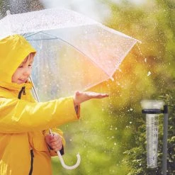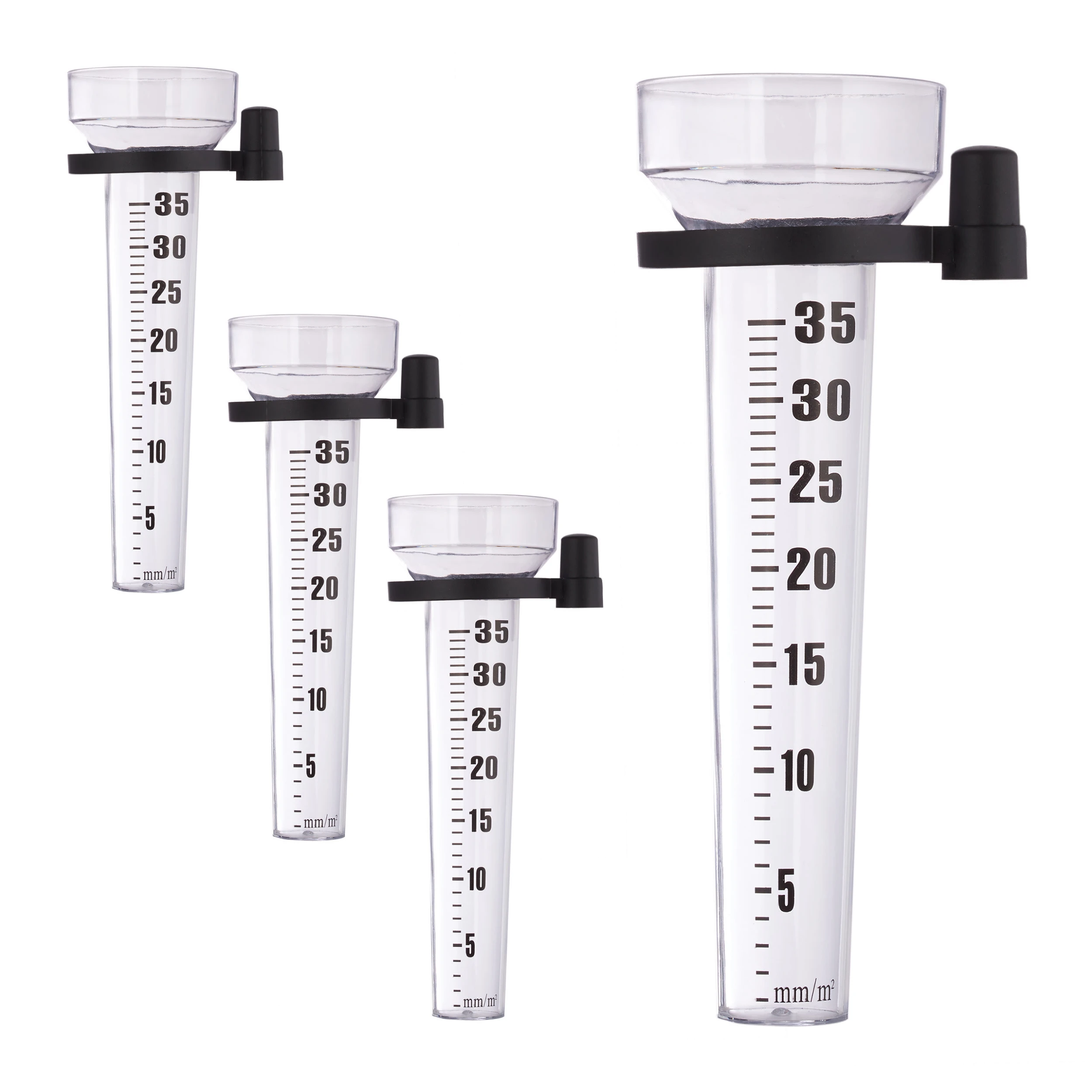 Wenn Sie sich schnell und unkompliziert über die Niederschlagsmenge informieren möchten, ist der Regenmesser im 4er Set genau das Richtige für Sie. Dank der großen Zahlen ist die aktuelle Regenmenge auch von weitem gut lesbar. Sie haben viele Möglichkeiten, die Regenwassermesser in Ihrem Garten zu positionieren. Dafür sorgen die passenden Halterungen, die sich einfach auf einen Stock oder Ast stecken lassen. Die Wassermesser sind komplett aus stabilem und wetterfestem Kunststoff gefertigt.