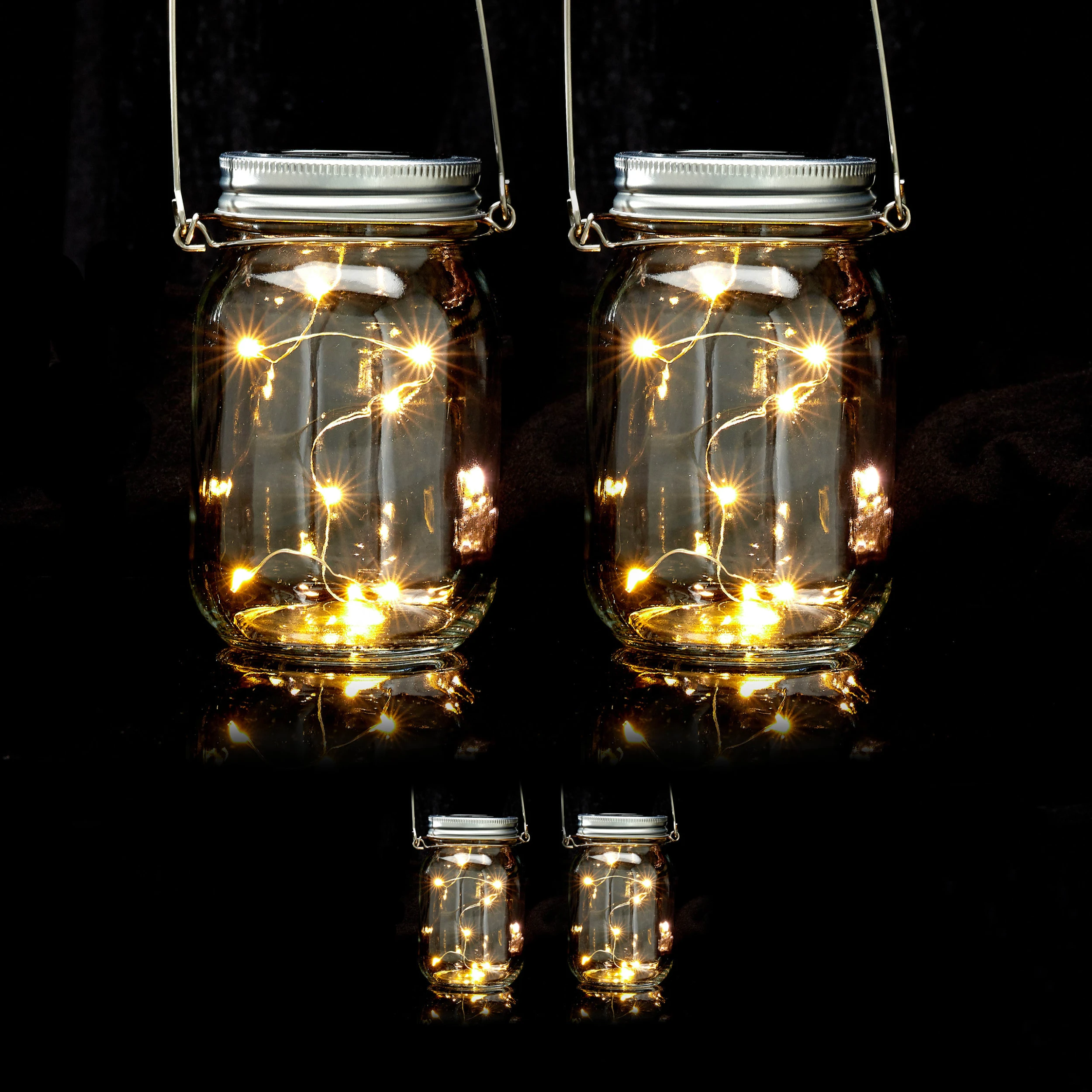 Die Solar Gläser sind ideal, um sie auf Terrasse und Balkon zu hängen: Sie gehen automatisch bei Dämmerung an, sodass Sie abends das stimmungsvolle Licht genießen können. Die Solar Laternen leuchten mit jeweils 8 LEDs und sind die perfekten Accessoires für schöne Sommerabende und ausgelassene Feste im Freien. Das Panel lädt sich dank der Sonne auf und benötigt dadurch keine Batterien – eine nachhaltige Lichtquelle, die stehend oder hängend platziert werden kann. Sie wirkt besonders schön als Hängeleuchte an Girlanden und Bäumen oder als Tischdeko bei der nächsten Hochzeit.