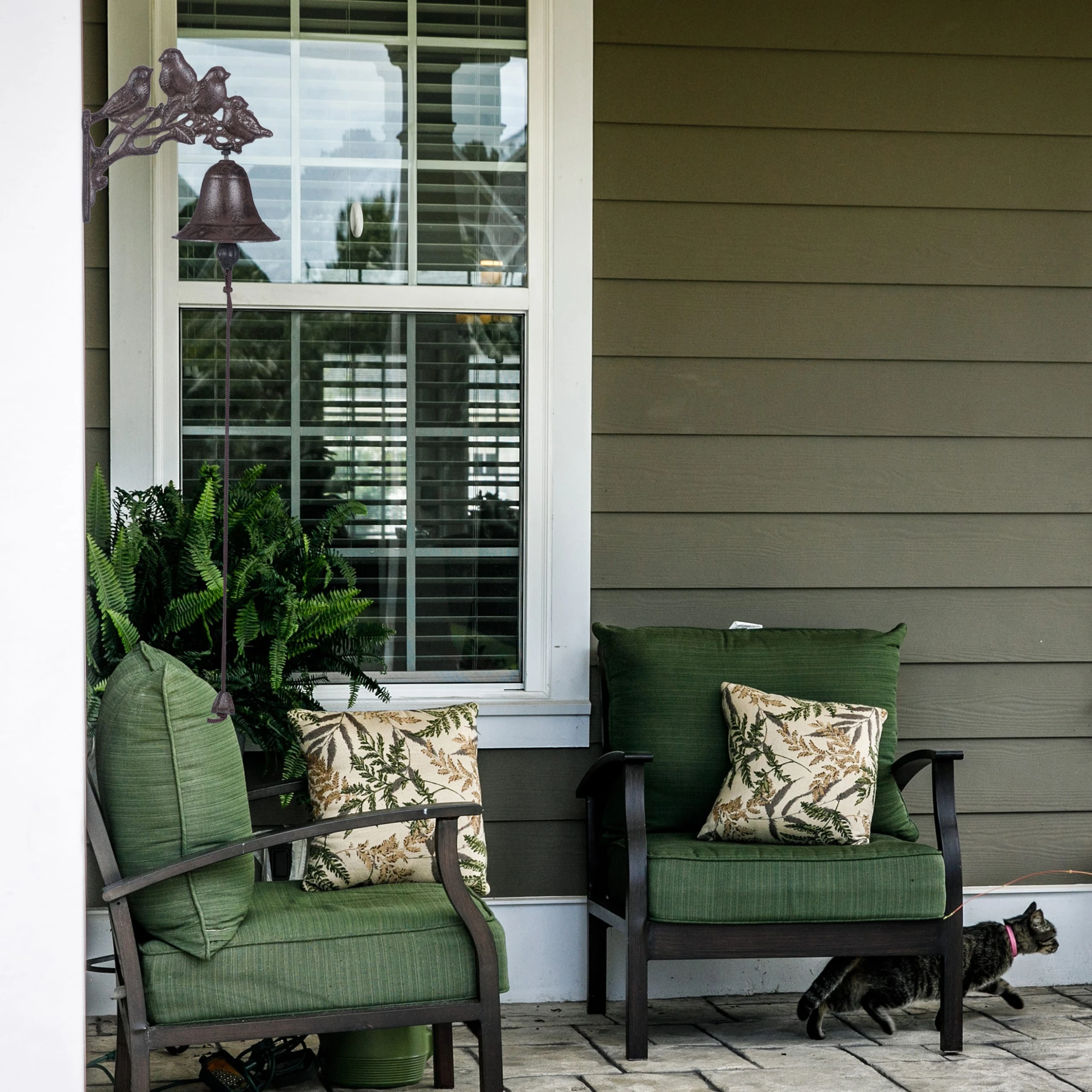 Die Türglocke aus Gusseisen mit den hübschen Vögeln verschönert Eingangsbereiche, Terrasse und Garten. Neben Tür und Tor an der Wand befestigt, wirkt die Glocke nicht nur einladend, sie kann mit ihrem hellen und lauten Klang auch dazu dienen, Freunde und Familie zusammenzutrommeln. In antiker Optik versprüht die Eisenglocke Vintage Charme und dekoriert im nostalgischen Landhausstil Ihren Außenbereich. Dank der drei vorgebohrten Löcher kann die wetterfeste Metallglocke leicht angebracht werden.