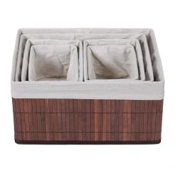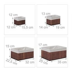 Wenn Badablage oder Wannenrand überfüllt sind, schafft der Aufbewahrungskorb fürs Badezimmer Ordnung. Der feuchtigkeitsabsorbierende Bambuskorb ist nicht nur für das Bad geeignet. Im ganzen Haus halten die Aufbewahrungsboxen die Dinge des Alltags an ihrem Platz. Die praktischen Dekokörbe zieren Kinder-, Schlaf- oder Wohnzimmer. Verwenden Sie das Set als Regalkorb oder Schrankbox für Socken, Accessoires und andere Kleinteile.