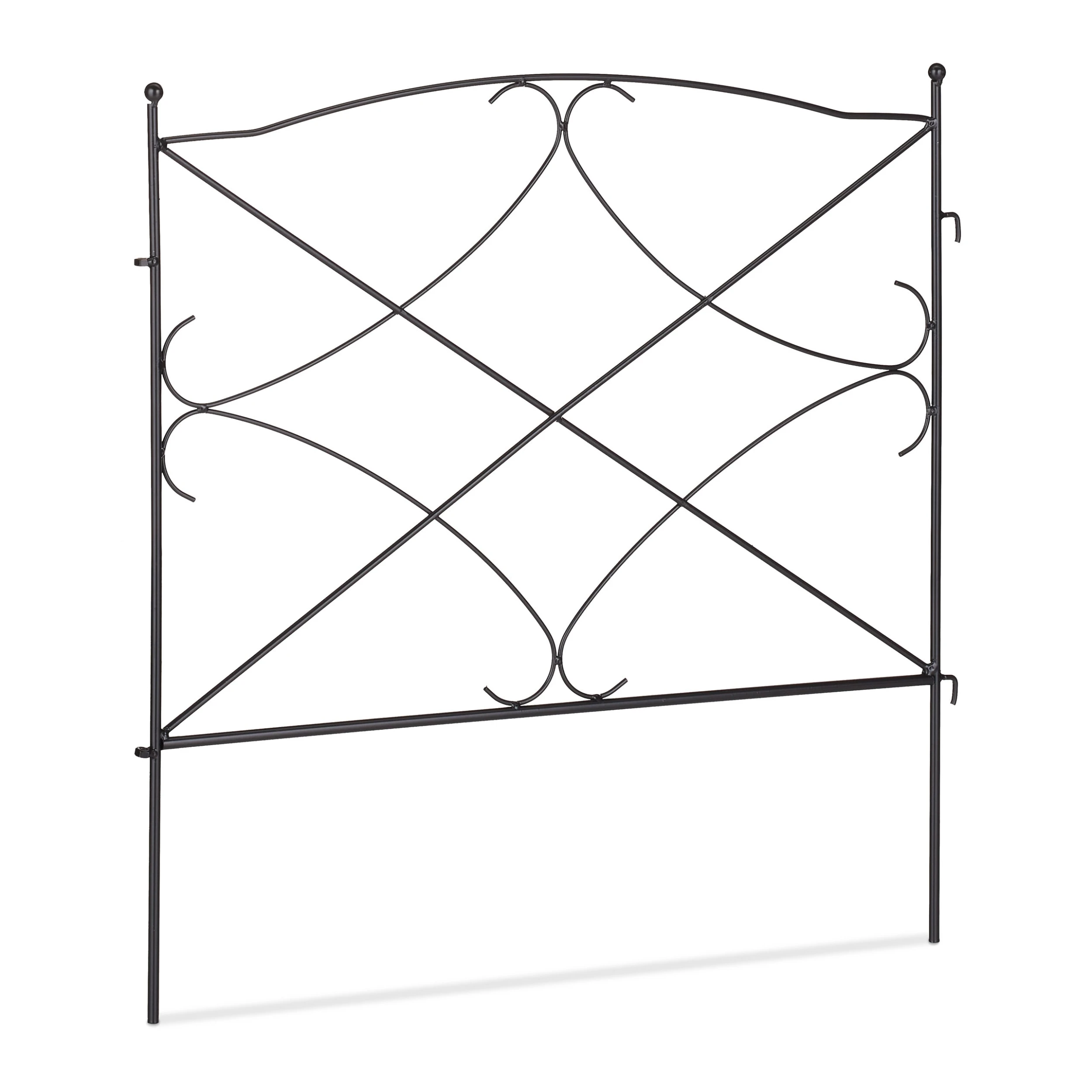 Mit dieser dekorativen Beeteinfassung gestaltest und verschönerst Du Deinen Garten schnell und einfach. Markiere die Übergänge zwischen Beeten, Grünflächen, Wegen und Rabatten mit dem niedrigen Zierzaun. Dazu werden die 6 Zaunelemente mit den Erdspießen einfach in den Boden gesteckt. Die Beetbegrenzung lässt sich je nach Bedarf flexibel anordnen. Mit seinem schlichten und zugleich dekorativen Design mit geschwungenen Ornamenten wird der Steckzaun dabei sicher zum Hingucker in Deinem Garten.