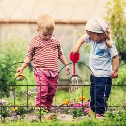 Mit dieser dekorativen Beeteinfassung gestaltest und verschönerst Du Deinen Garten schnell und einfach. Markiere die Übergänge zwischen Beeten, Grünflächen, Wegen und Rabatten mit dem Zierzaun. Dazu werden die 6 Zaunelemente mit den Erdspießen einfach in den Boden gesteckt. Die Beetbegrenzung lässt sich je nach Bedarf flexibel anordnen. Mit seinem schlichten schwarzen und zugleich dekorativen Design wird der Metallsteckzaun dabei sicher zum Hingucker in Deinem Garten.