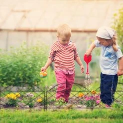 Mit dieser dekorativen Beeteinfassung gestaltest und verschönerst Du Deinen Garten schnell und einfach. Markiere die Übergänge zwischen Beeten, Grünflächen, Wegen und Rabatten mit dem niedrigen Zierzaun. Dazu werden die 6 Zaunelemente mit den Erdspießen einfach in den Boden gesteckt. Die Beetbegrenzung lässt sich je nach Bedarf flexibel anordnen. Mit den schönen Verzierungen im Vintage-Look wird der Steckzaun dabei sicher zum Hingucker in Deinem Garten.