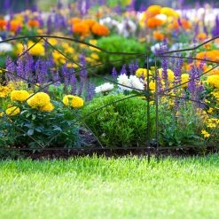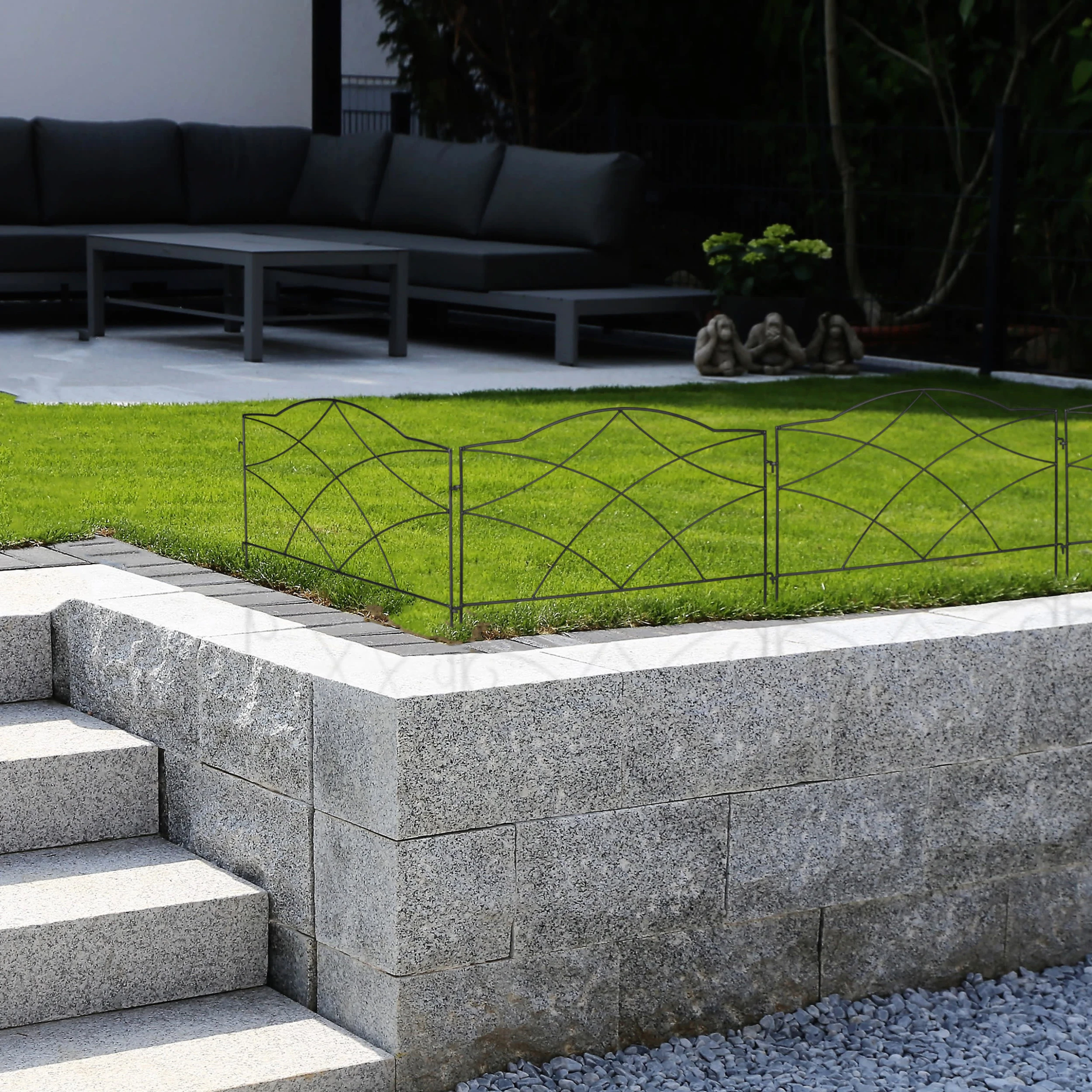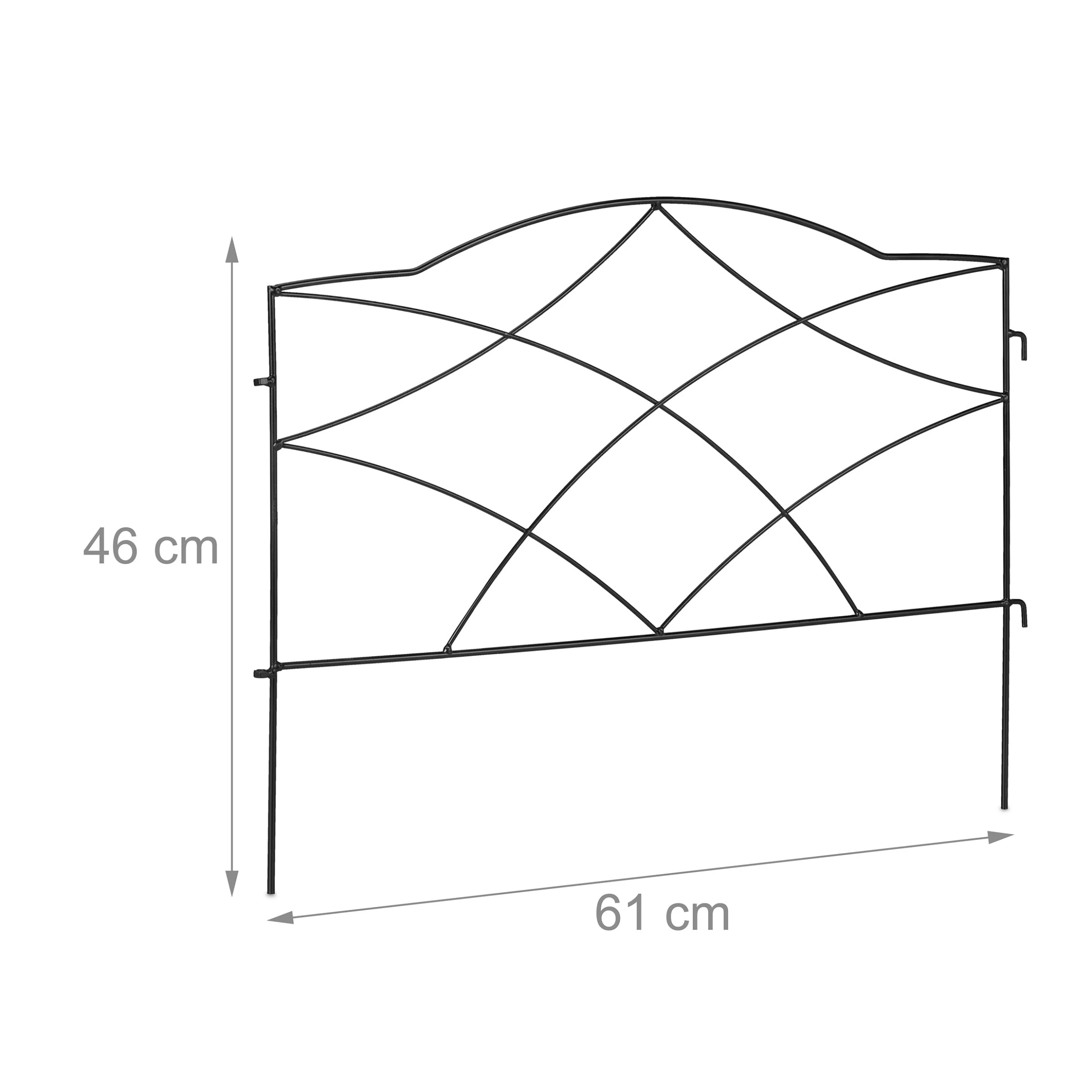 Mit dieser dekorativen Beeteinfassung gestaltest und verschönerst Du Deinen Garten schnell und einfach. Markiere die Übergänge zwischen Beeten, Grünflächen, Wegen und Rabatten mit dem niedrigen Zierzaun. Dazu werden die 6 Zaunelemente mit den Erdspießen einfach in den Boden gedrückt. Die schwarze Beetbegrenzung lässt sich je nach Bedarf flexibel anordnen. Mit seinem schlichten und zugleich dekorativem Design wird der Steckzaun aus Eisen dabei sicher zum Hingucker in Deinem Außenbereich.