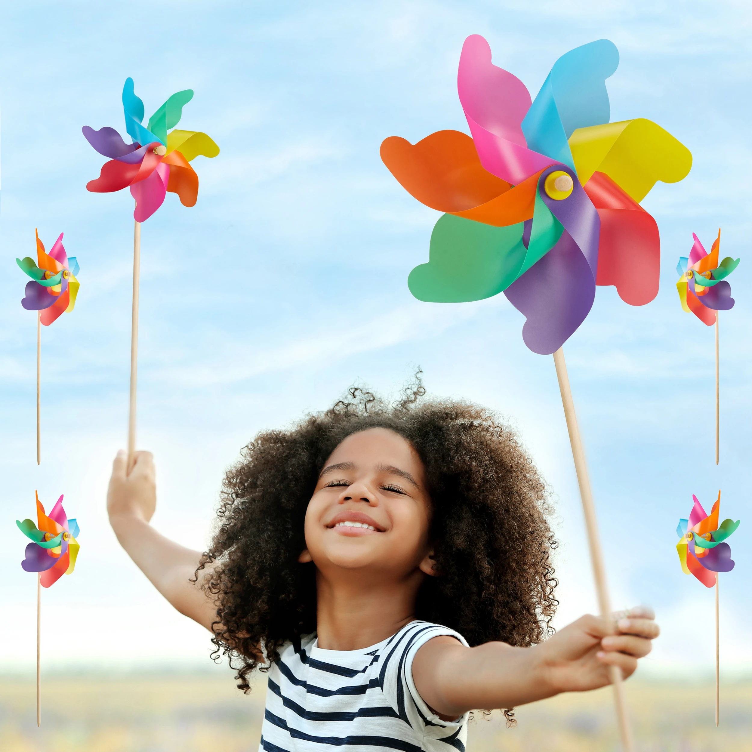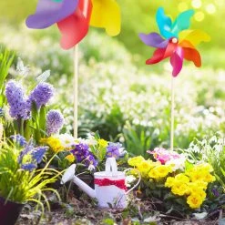 Genießen Sie das prachtvolle Farbenspiel, wenn das Windrad von wehenden Lüften angetrieben wird. An den optischen Eindrücken des Windspiels erfreuen sich sowohl Kinder als auch Erwachsene. Platzieren Sie die Windmühlen im Garten, auf der Terrasse oder nehmen Sie sie mit zum Strand oder Camping.
