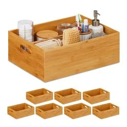 Mit dieser Allzweckkiste holen Sie sich ein wahres Universaltalent zum Aufbewahren, Lagern und Transportieren verschiedenster Dinge nach Hause. Je nach gewählter Größe eignet sich die Bambus-Aufbewahrungsbox zum Beispiel wunderbar zum Verstauen Ihrer Utensilien im Badezimmer, als Gewürzkiste in der Küche, als Ordnungsbox in Wohnzimmer und Büro oder zur Aufbewahrung des Spielzeugs im Kinderzimmer. Mit ihrer natürlichen Maserung setzt die stabile Holzbox dabei in jedem Raum dekorative Akzente.