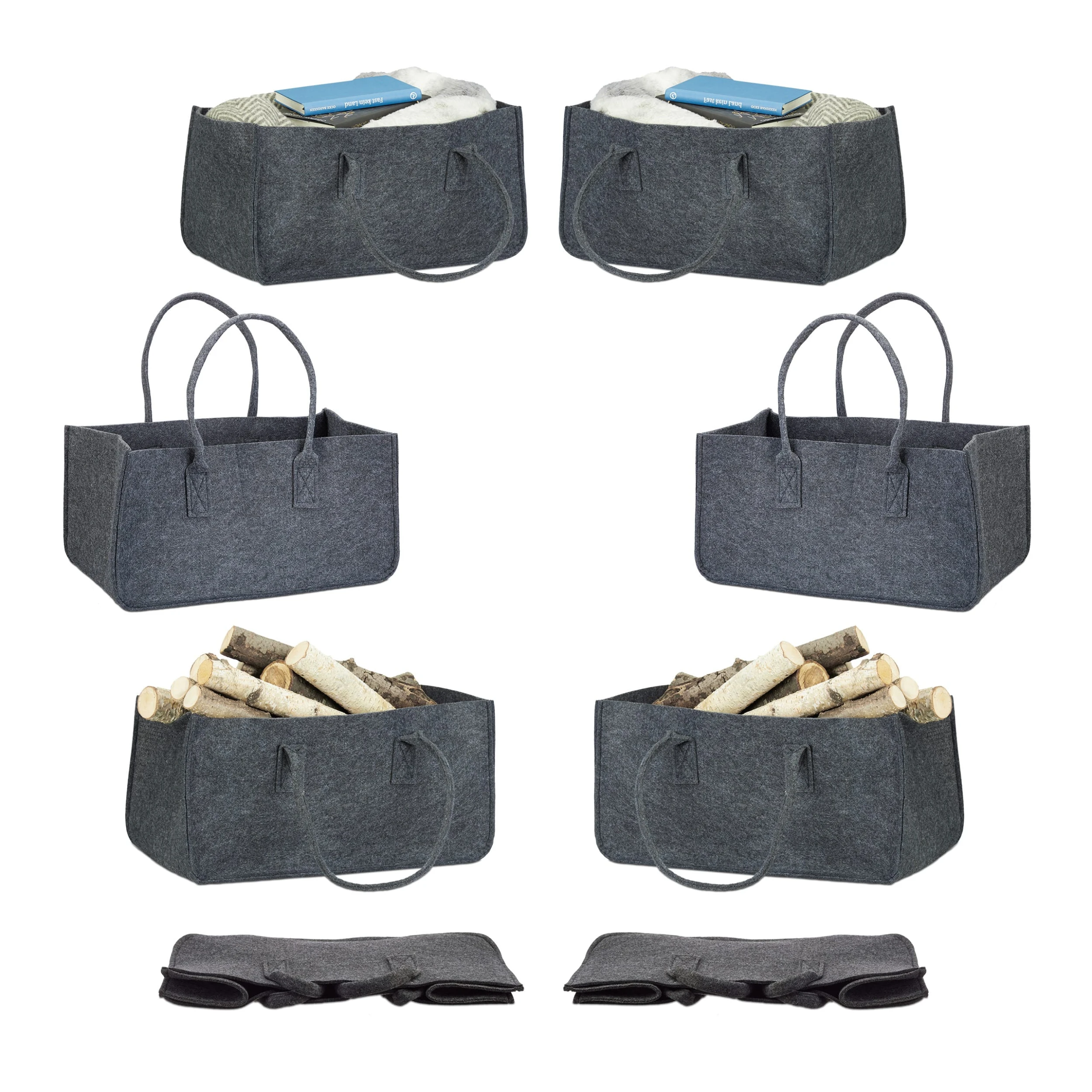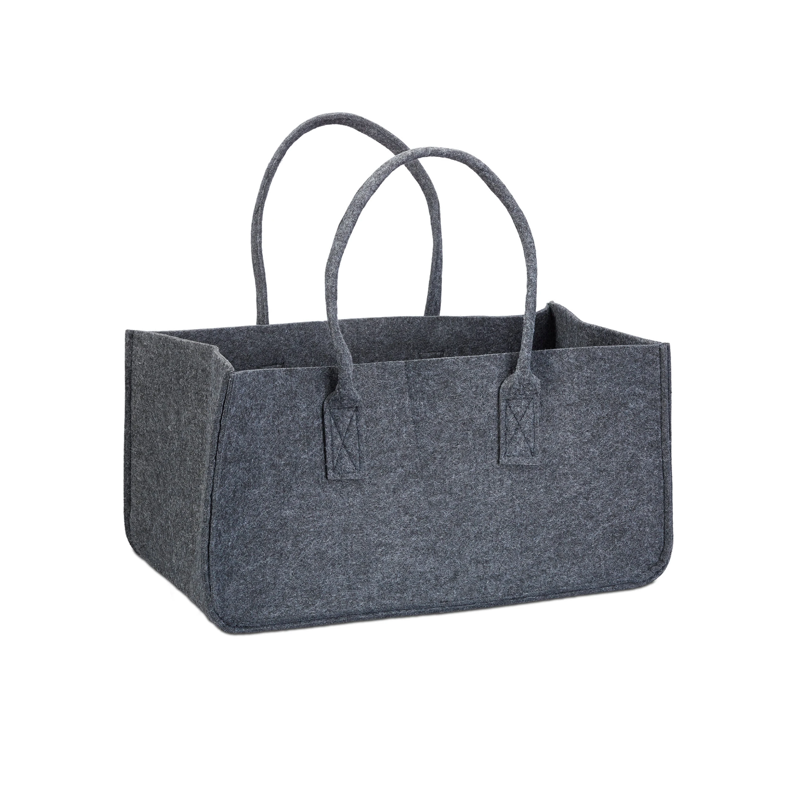 Mit dieser robusten Filztasche ist der Transport und die Lagerung von Kaminholz, Zeitschriften und vielem anderen Füllgut kinderleicht. Die rustikale Filzoptik der Kaminholztasche ist zudem dekorativ. Der flexible Filzkorb ist als Aufbewahrungstasche ein praktischer Begleiter, ob in Bad, Diele oder Wohnzimmer. Auch als Einkaufstasche macht der Zeitungshalter dank der Haltegriffe eine gute Figur.