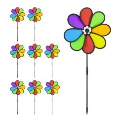 Wenn Sie eine neue Dekoration für Ihre Terrasse oder den Balkon suchen, treffen Sie mit diesem Windrad die richtige Wahl. Das Windrad bringt den Regenbogen Flair direkt zu Ihnen nach Hause und kann Ihnen und Ihren Kindern spielerisch Freude bereiten. Der bunte Look peppt Ihren Garten auf und wird zum Gesprächsthema bei jedem Besuch. Das Balkonwindrad ist sehr stabil und kann per Erdspieß schnell und einfach in den Boden gesteckt werden.