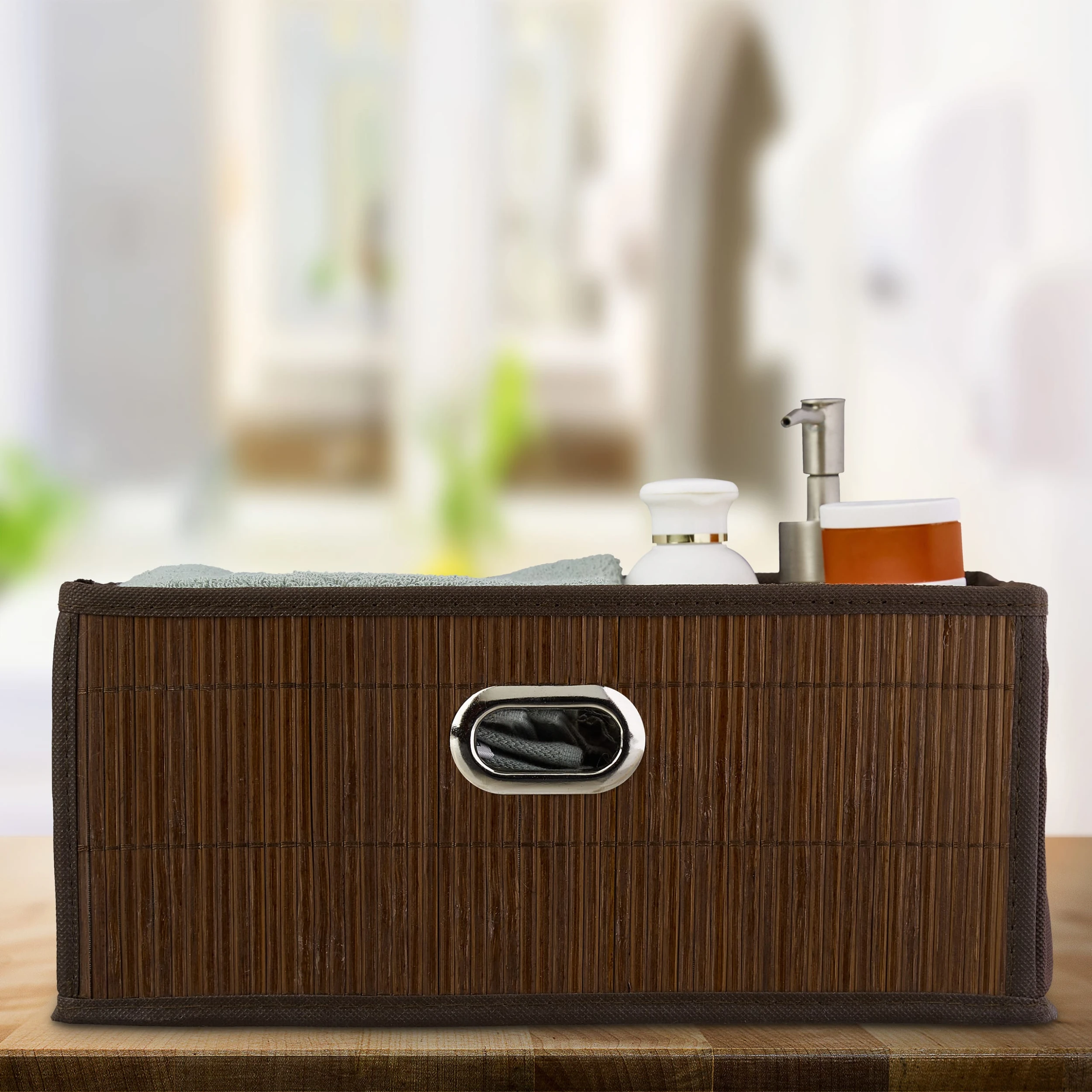 Ob für Unterwäsche im Kleiderschrank oder Accessoires in der Garderobe, im Regalkorb sind Ihre Utensilien ordentlich verstaut. Dank natürlichem Bambus-Dekor ist die Aufbewahrungsbox auch im Badezimmer gut aufgehoben. Hier dient sie zur Aufbewahrung von Badutensilien oder als Handtuchkorb. Platzieren Sie den quadratischen Bambuskorb im Schrank oder Regal, wo er mit dem Eingriff einfach herausgezogen werden kann. Bei Nichtgebrauch ist das Badkörbchen im Nu zusammengefaltet verstaubar.