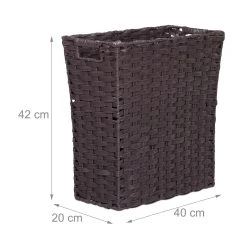 Mit diesem Aufbewahrungskorb aus Kunststoff ist jeder Haushalt mit wenig Platz gerettet. Der Flechtkorb ist schmal und lässt sich daher in jeder Nische gut verstauen. Gleichzeitig hilft Dir der Nischenkorb auf vielfältige Weise, für Ordnung zu sorgen. Ob als Papierkorb in Küche, Büro oder Wohnzimmer, als Wäschekorb im Badezimmer oder als Regenschirmaufbewahrung im Flur – setze den Korb dort ein, wo Du ihn gerade benötigen. Dank seiner 2 Griffe lässt er sich überallhin transportieren.