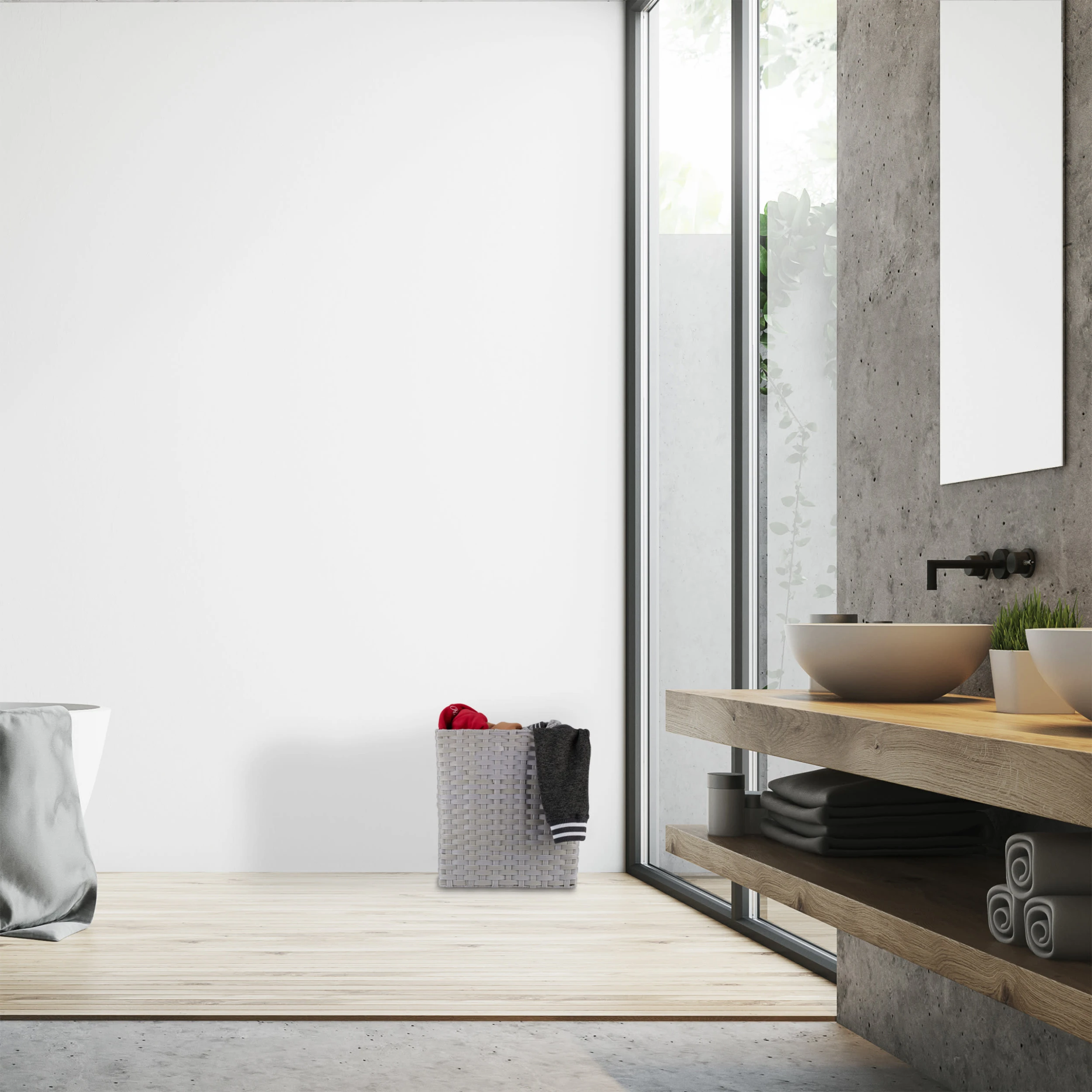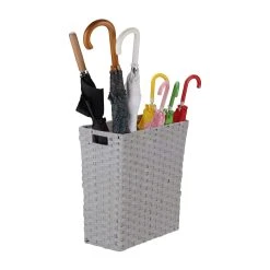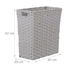 Mit diesem Aufbewahrungskorb aus Kunststoff ist jeder Haushalt mit wenig Platz gerettet. Der Flechtkorb ist schmal und lässt sich daher in jeder Nische gut verstauen. Gleichzeitig hilft Dir der Nischenkorb auf vielfältige Weise, für Ordnung zu sorgen. Ob als Papierkorb in Küche, Büro oder Wohnzimmer, als Wäschekorb im Badezimmer oder als Regenschirmaufbewahrung im Flur – setze den Korb dort ein, wo Du ihn gerade benötigen. Dank seiner 2 Griffe lässt er sich überallhin transportieren.