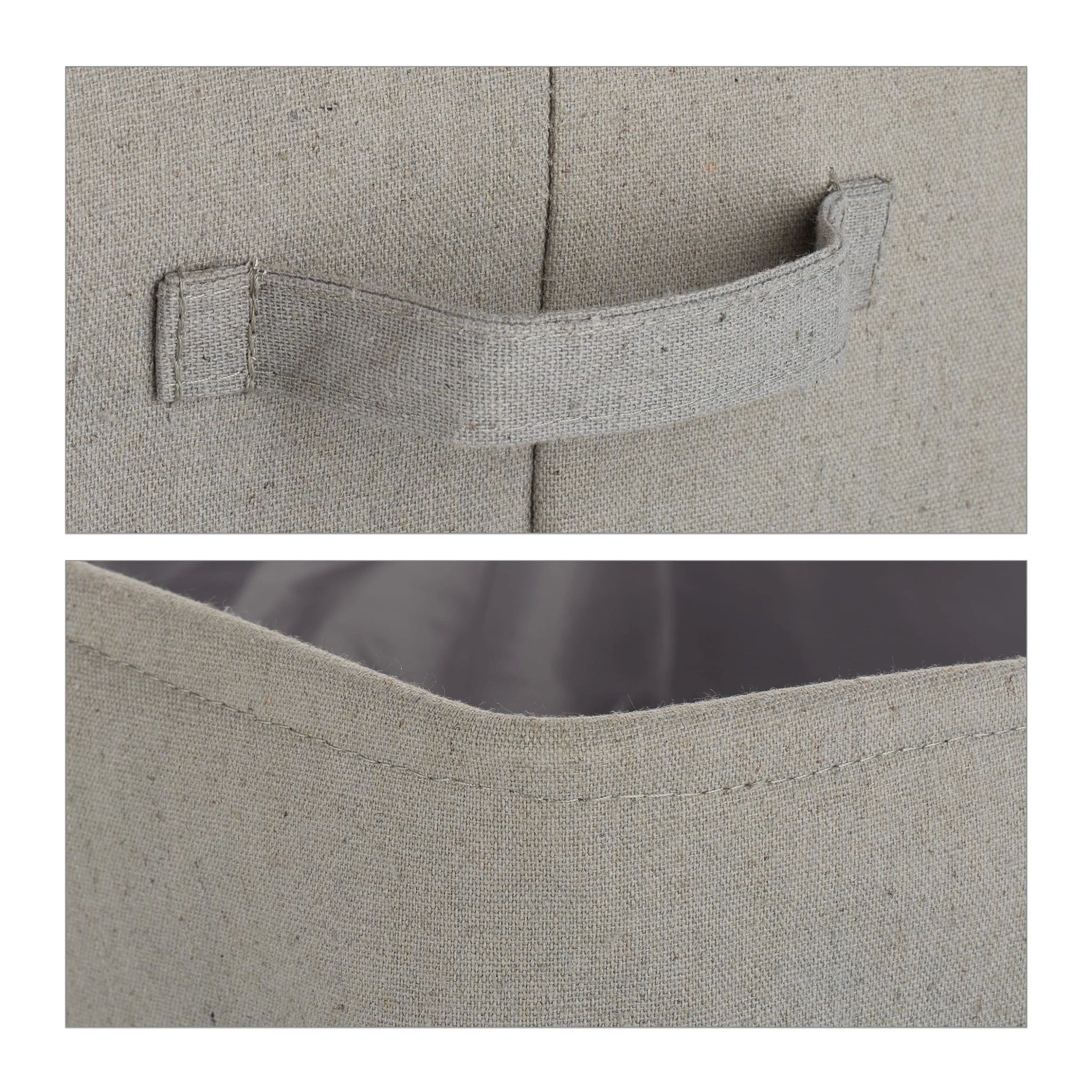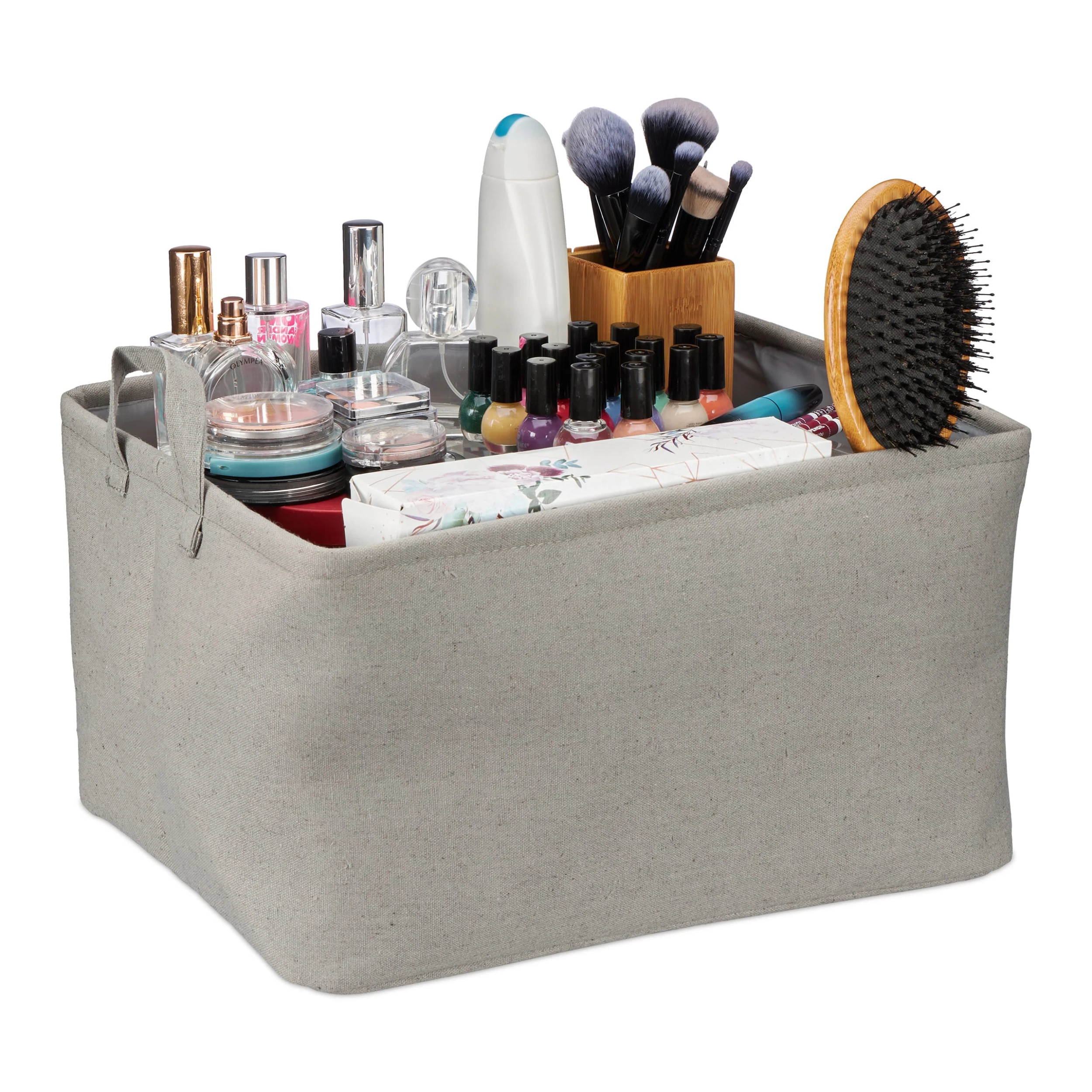 Mit diesem Stoffaufbewahrungskorb bist Du ideal ausgerüstet, diverse Dinge des täglichen Bedarfs übersichtlich zu verstauen. Du kannst in der dekorativen Badbox Kosmetikartikel, Handtücher, Socken und vieles mehr aufbewahren. Zusätzlich wird durch das verwendete Material ein hohes Maß an Stabilität geschaffen. Außerdem erleichtern die beiden Griffe das Hinausziehen beziehungsweise Verstauen der Körbe. Wenn Du den Utensilienkorb nicht benötigst, kannst Du ihn platzsparend zusammenfalten.