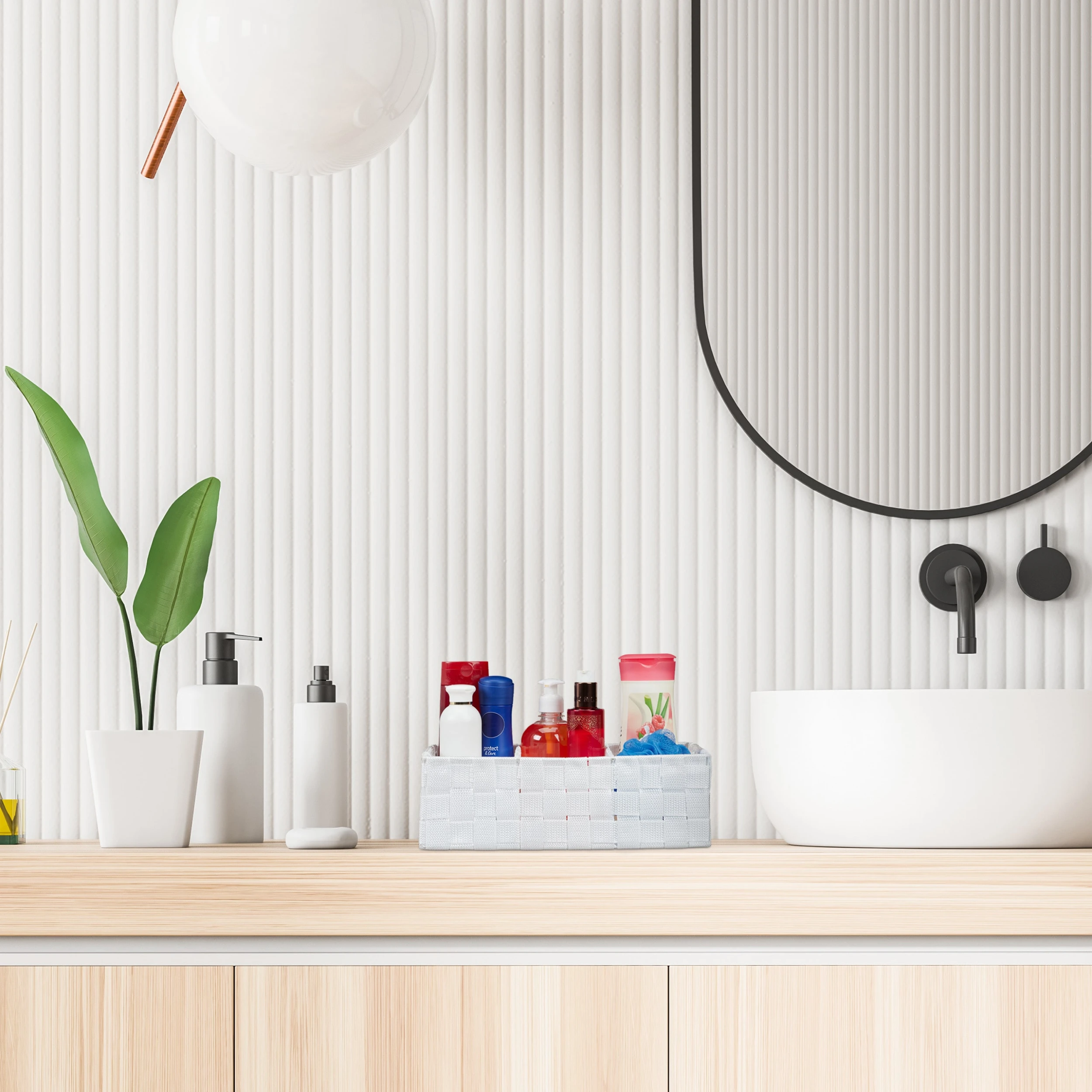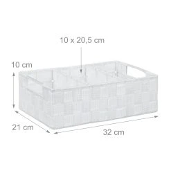 Wenn im Bad Chaos herrscht, schafft das Füllkörbchen Ordnung. Doch die Organizerbox ist nicht nur für das Badezimmer geeignet. Im ganzen Haus hält die Aufbewahrungskiste mit 3 Fächern die Dinge des Alltags übersichtlich an ihrem Platz. Die Ordnungsbox mit Griffen ziert das Schlafzimmer als Sockenbox oder wird im Wohnzimmer zur Aufbewahrung von Kabeln oder Bastelmaterialien genutzt. Verwenden Sie die Box auch als Notfallkörbchen für Hygieneartikel auf einer Hochzeit.