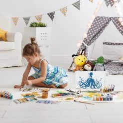 Dieser Regalkorb liefert Ihnen praktischen Stauraum und ist vielseitig einsetzbar. Die Aufbewahrungskiste ist ideal zum Verstauen von Badutensilien, Spielzeug, Bastelmaterial, Büchern und anderen Gegenständen. Das maritime Design mit blau-weißen Streifen, Oktopus Motiv und Seilgriffen fügt sich hervorragend in Einrichtungen im Strandhausstil ein und ist in jedem Zimmer ein Hingucker. Bei Nichtgebrauch kann der Dekokorb einfach zusammengefaltet und platzsparend verstaut werden.