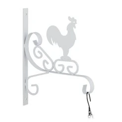 Mit dieser schicken Blumenampelhalterung kannst Du Deine Pflanzen und Blumentöpfe dekorativ in Szene setzen. Der Ampelhalter mit den geschwungenen Verzierungen und der Hahnfigur eignet sich hervorragend für Deinen Balkon oder Garten, kann aber auch in der Wohnung genutzt werden. Laternen, Windspiele oder Blumenkränze kannst Du ebenso an dem Wandhaken präsentieren. Die Pflanzenaufhängung aus Eisen kann mithilfe des beiliegenden Montagematerials schnell an der Wand befestigt werden.