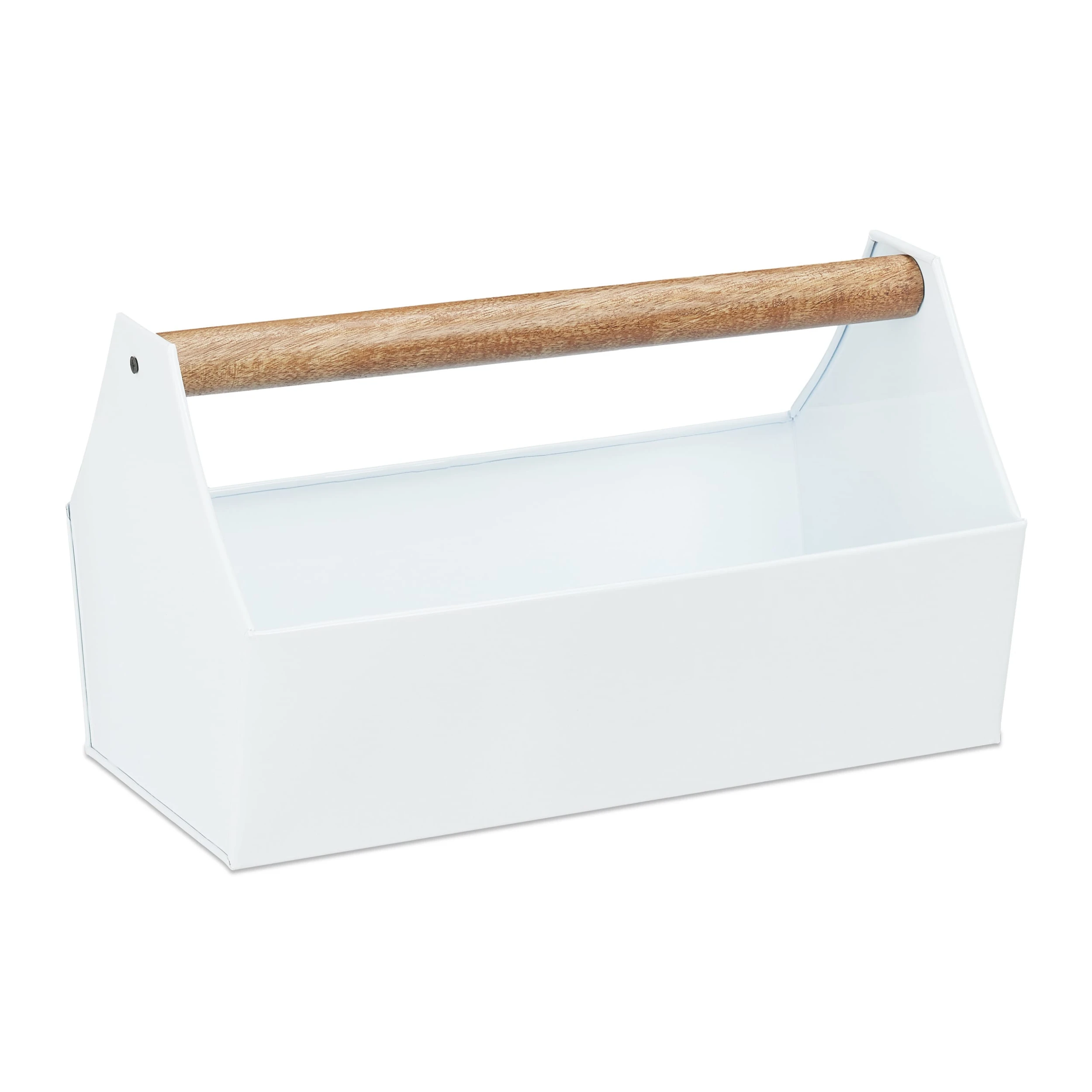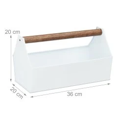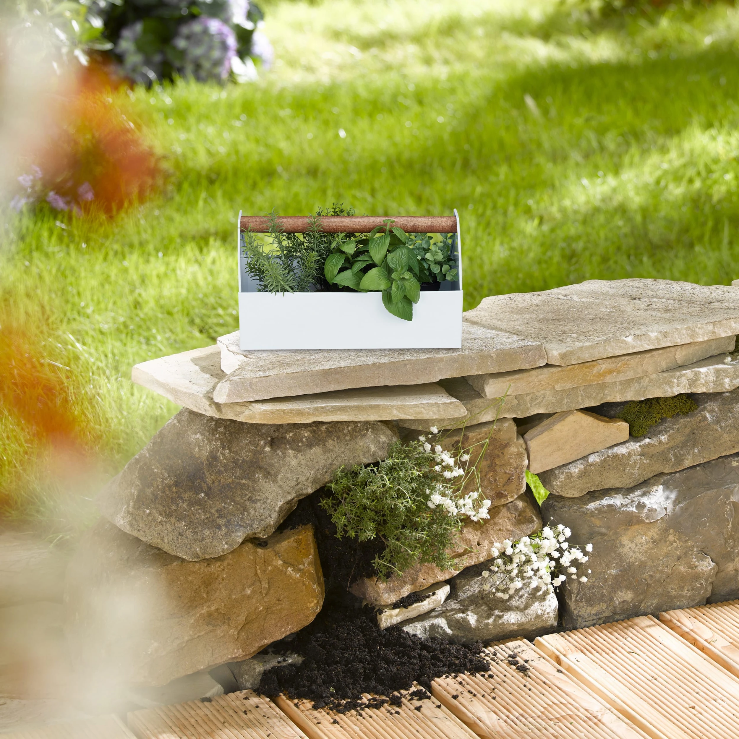 Mit seinem Vintage-Design ist der Pflanzenkasten eine Augenweide im Garten, auf der Terrasse oder dem Balkon. Der Balkonkübel wurde aus stabilem Eisen gefertigt und erinnert von der Form an einen kleinen Werkzeugkasten. In diesem fühlen sich Ihre Pflanzen, Blumentöpfe und Kräuter pudelwohl. Dank des praktischen Holzgriffes ist der Metallkorb leicht zu transportieren. So kann man ihn auch ideal als Tragekorb für Werkzeug, Gartenutensilien, Saatgut und mehr verwenden.