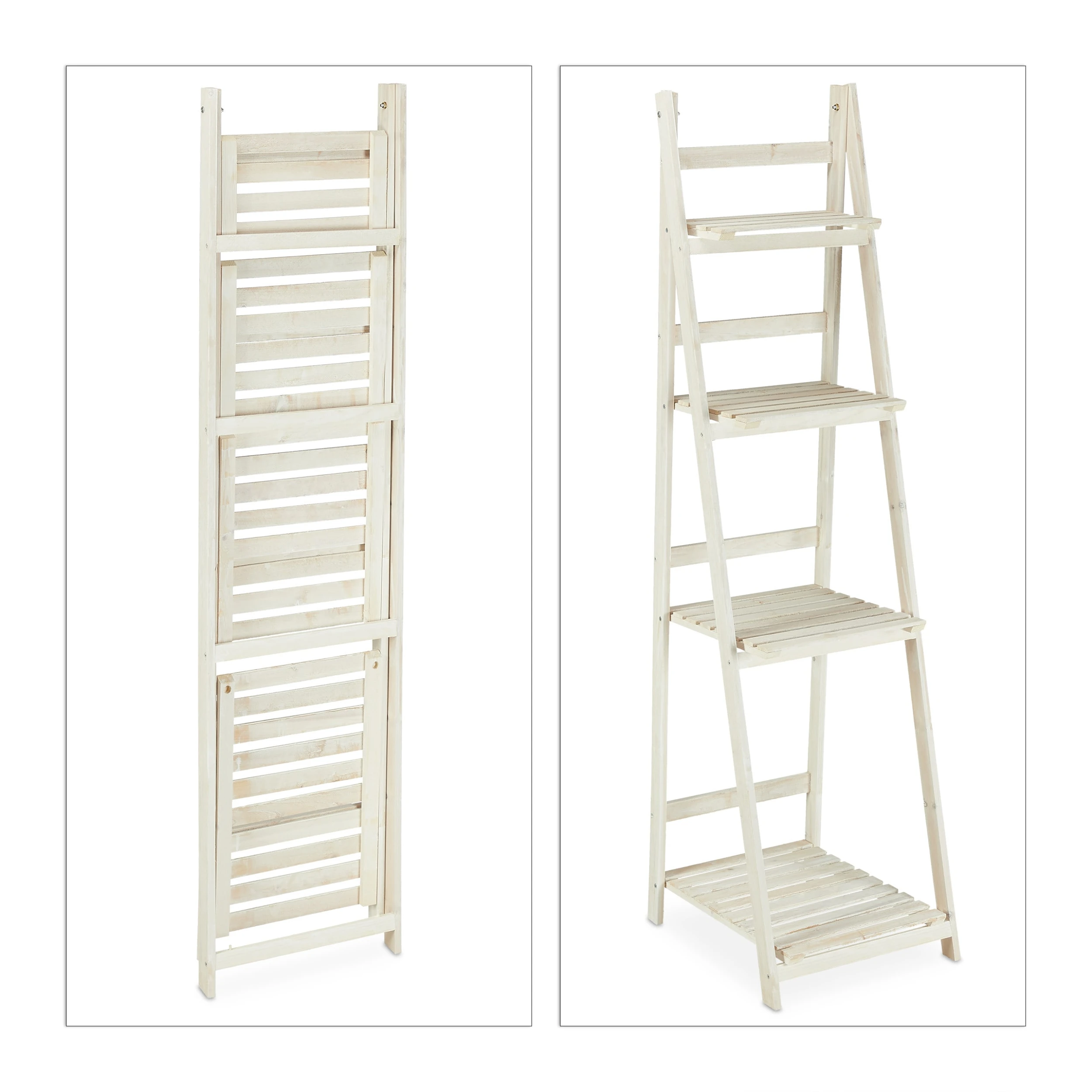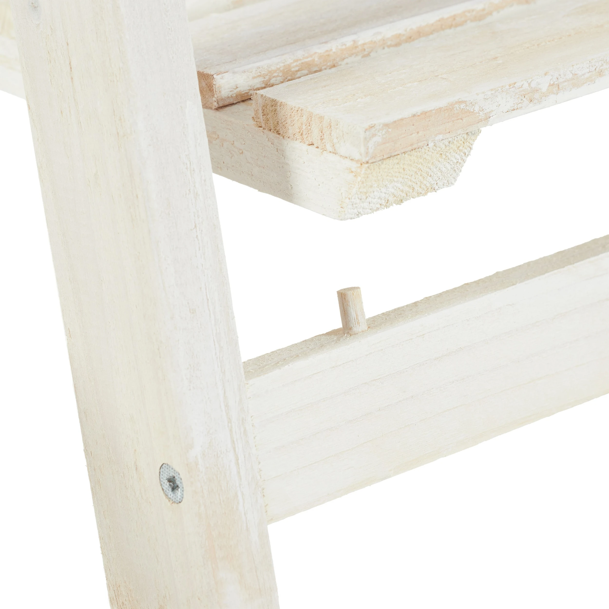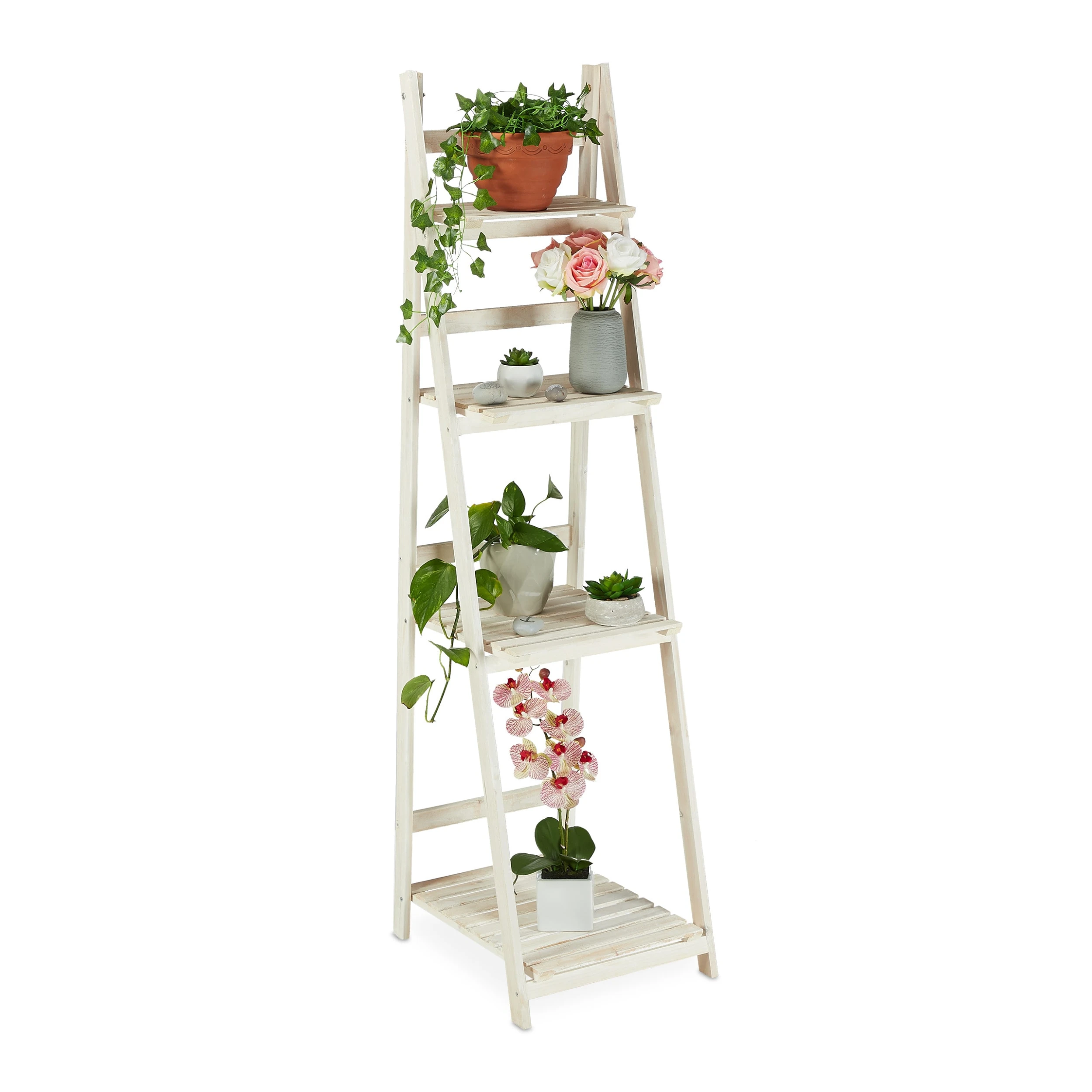 Die Pflanzleiter schafft endlich den nötigen Platz, um Ihre geliebten Blumen dekorativ zu präsentieren. Gestalten Sie Ihre persönliche kleine Pflanzenecke im Wohnzimmer oder stellen Sie die Blumenetagere in einer geschützten Ecke auf den Balkon auf. Das weiße Pflanzregal ist aus Holz gefertigt und fügt sich im Shabby-Chic Design überall gut ein. Bei Nichtgebrauch klappen Sie das Leiterregal einfach zusammen und verwahren es platzsparend.