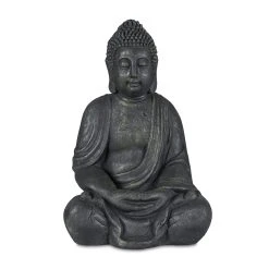 Die große Statue zeigt den sitzenden Buddha in Meditationshaltung, ein Talisman für Glück und Erkenntnis. Die spirituelle Dekofigur verschönert Balkon, Terrasse und Garten und macht sie zu Deinem persönlichem Wohlfühlort. Aus hochwertigem Polyresin ist die Buddha Figur dank ihrer wetterfesten und frostsicheren Eigenschaften bestens für den Outdoorbereich geeignet. Aber auch im Wohnzimmer oder im Bad ist die Skulptur ein besonderer Blickfang, der Ruhe und Kraft ausstrahlt.