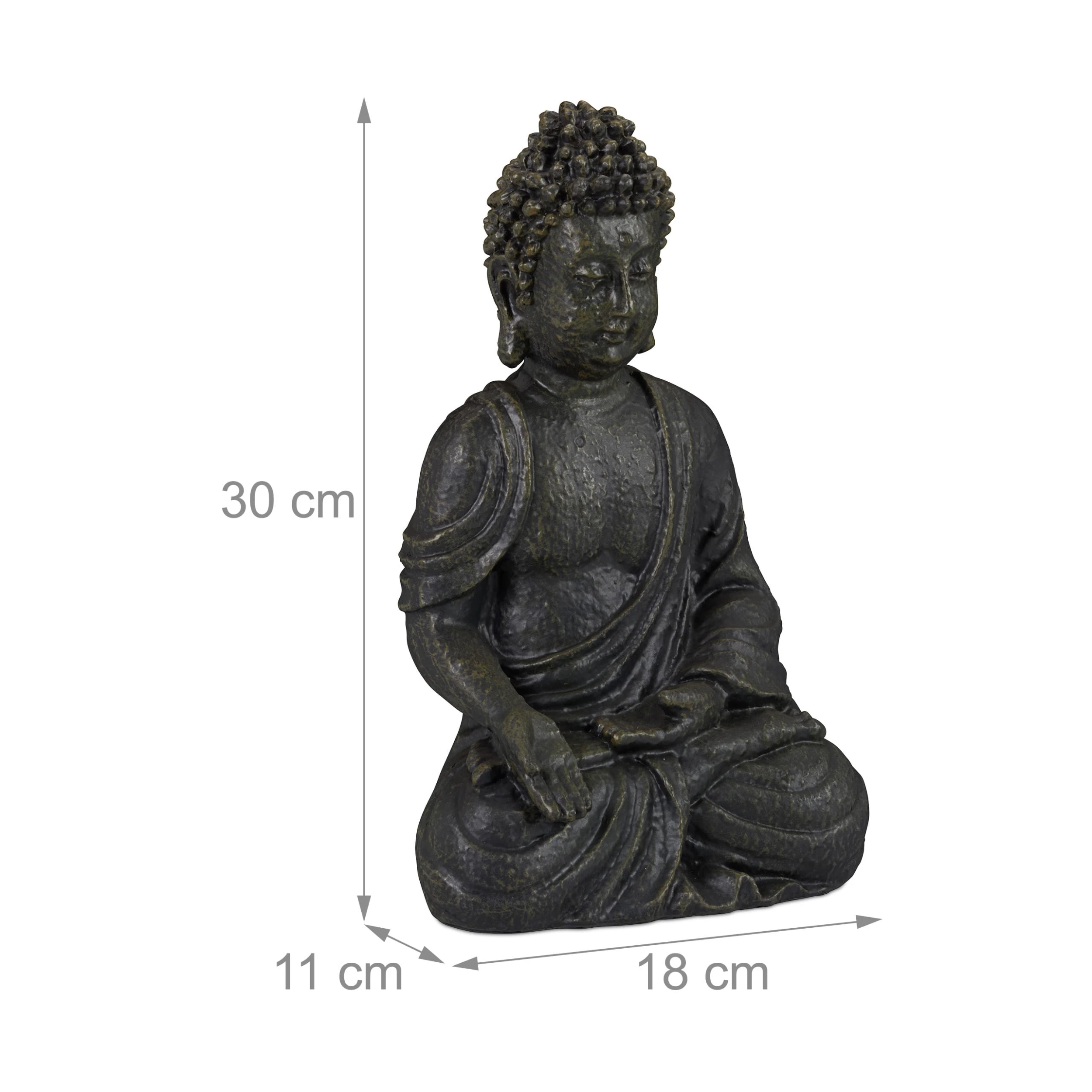 Die kleine Statue zeigt den sitzenden Buddha in Meditationshaltung, ein Talisman für Glück und Erkenntnis. Die spirituelle Dekofigur verschönert Balkon, Terrasse und Garten und macht sie zu Ihrem persönlichem Wohlfühlort. Aus robustem Material ist die Buddha Figur, dank ihrer wetterfesten und frostsicheren Eigenschaften, bestens Outdoor geeignet. Aber auch im Wohnzimmer oder im Bad ist die Skulptur ein besonderer Blickfang, der Ruhe und Kraft ausstrahlt.