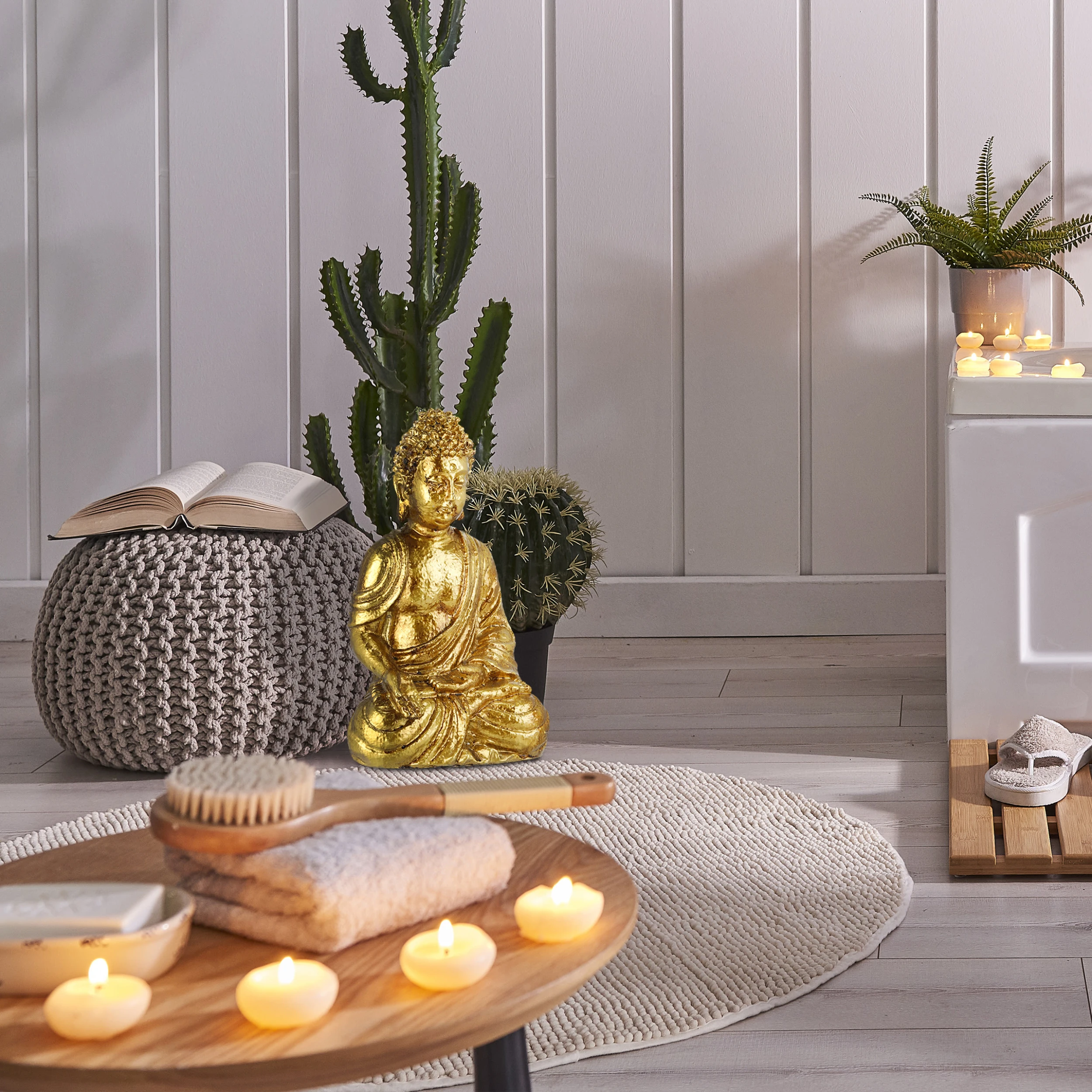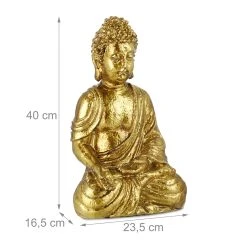 Die Statue zeigt den sitzenden Buddha in Meditationshaltung, ein Talisman für Glück und Erkenntnis. Die spirituelle Dekofigur verschönert Balkon, Terrasse und Garten und macht sie zu Ihrem persönlichem Wohlfühlort. Aus hochwertigem Polyresin ist die Buddha Figur, dank ihrer wetterfesten und frostsicheren Eigenschaften, bestens Outdoor geeignet. Aber auch im Wohnzimmer oder im Bad ist die Skulptur ein besonderer Blickfang, der Ruhe und Kraft ausstrahlt.